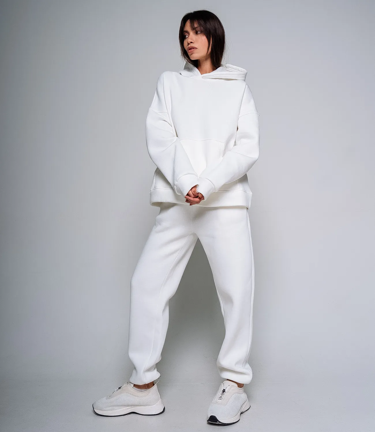 Теплый костюм на флисе с капюшоном и карманом "кенгуру" - это про стиль и комфорт. Теплая ткань и свободный покрой подходит для повседневной носки и любительницам спорта.