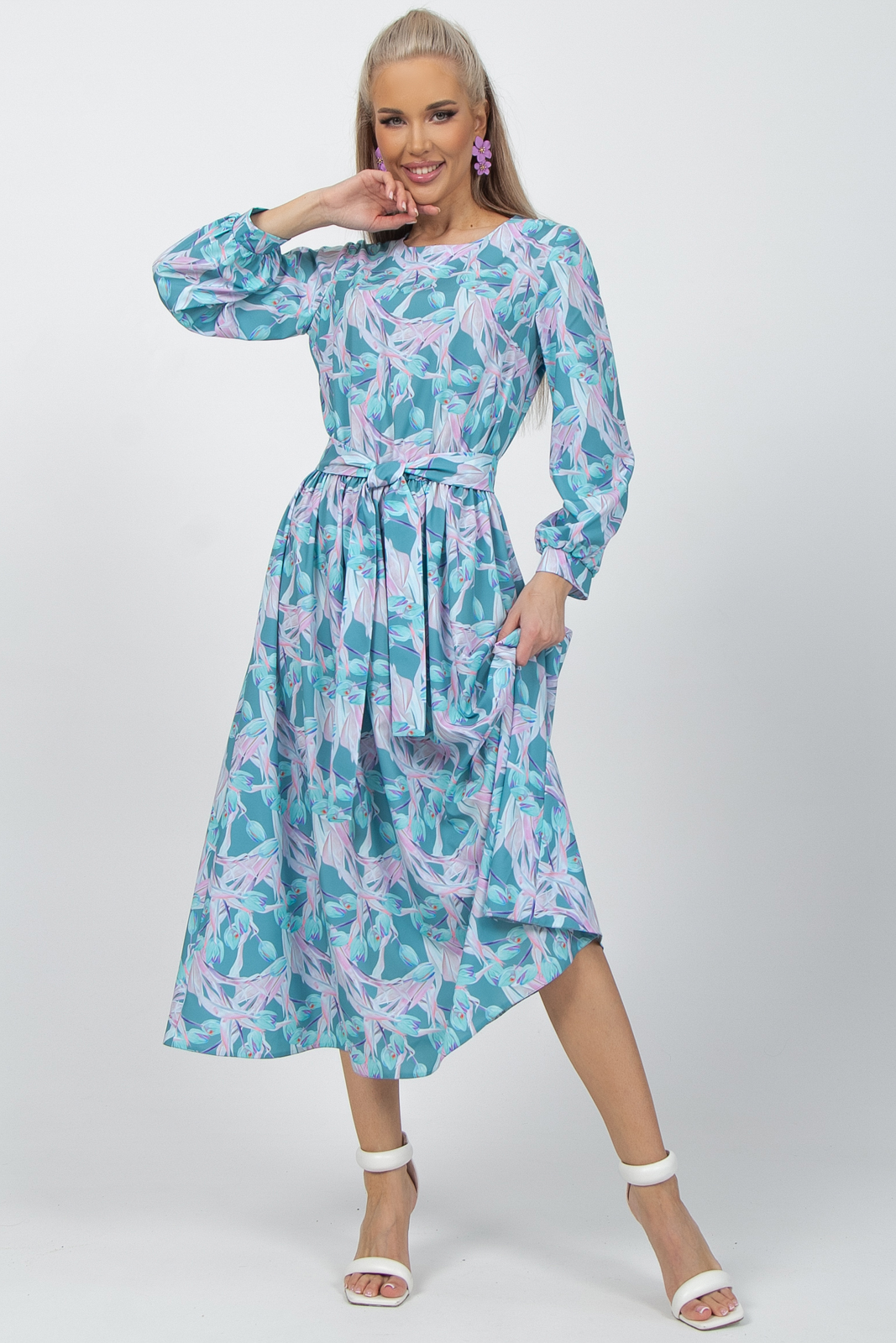 Платье “Миранда” создано для того, чтобы вы почувствовали себя особенной. Утонченный дизайн и изысканный узор придадут вашему образу изысканности и элегантности, подчеркнув вашу неповторимую красоту. Платье имеет резинку и пояс, которые акцентируют внимание на талии, подчеркивая изящные формы. При этом не сковывает движений и позволяет быть активной. Одной из главных особенностей платья является его материл. Ткань обладает легкостью, воздушностью и тактильно приятной текстурой.