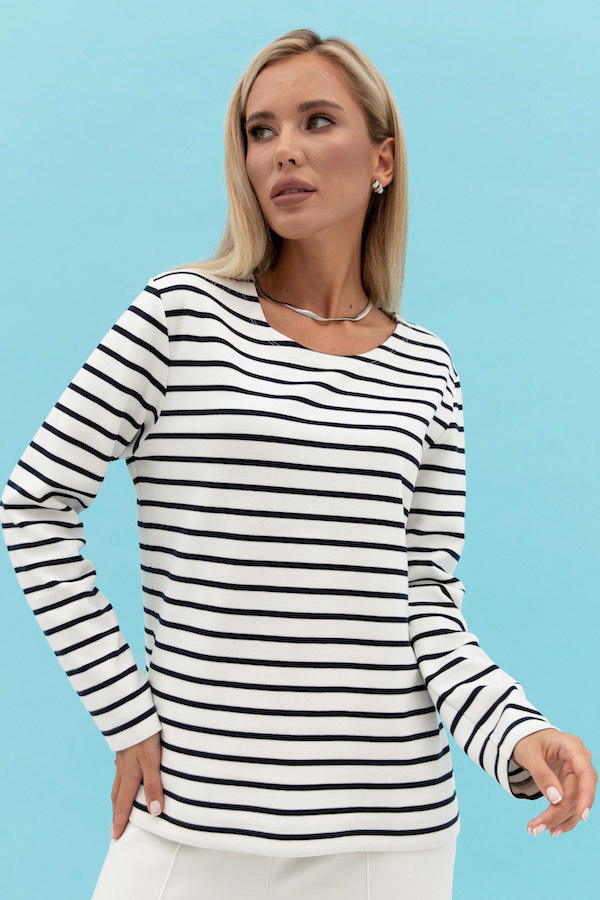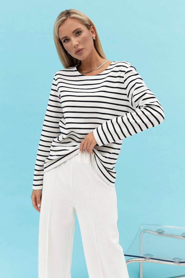 Джемпер свободного силуэта из эластичного полотна. Круглый вырез горловины, втачной длинный рукав.