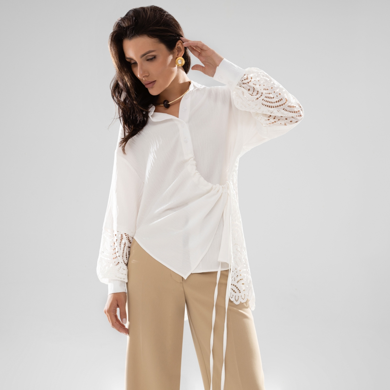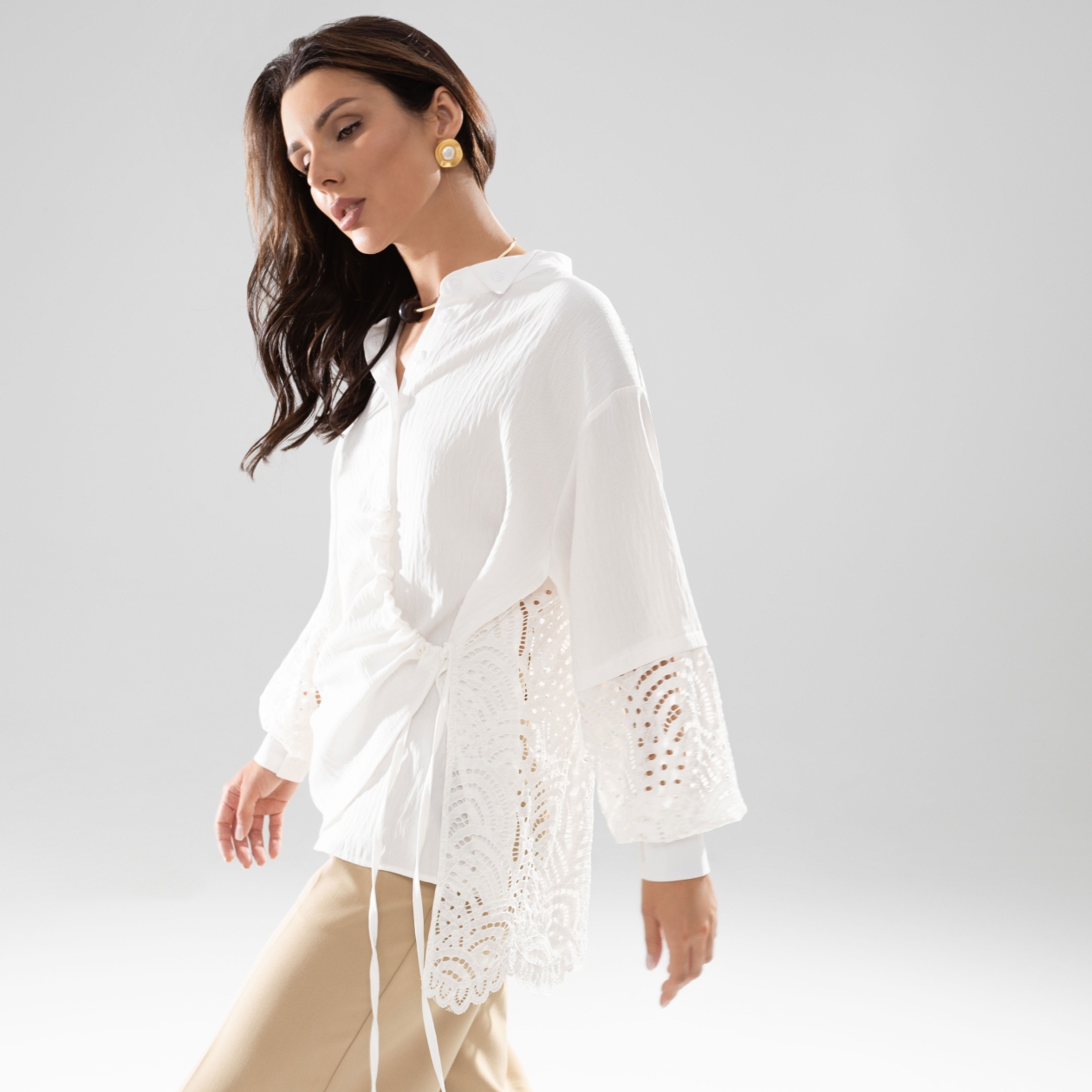 Рубашка «Дивная смелость» – это настоящее воплощение роскоши и утончённого стиля, созданное для женщин, любящих смелые решения и неповторимость. Исключительный асимметричный крой этой одежды подчёркивает её оригинальность и деликатную гармонию. Жатка и вставки из кружева создают поистине незабываемый образ, который невозможно не заметить. Каждая деталь продумана до мелочей, чтобы удовлетворить самые изысканные вкусы и стремления. Покупая такие рубашки оптом, вы получаете возможность предложить своим клиентам нечто особенное, что пробуждает фантазию и влюбляет с первого взгляда.