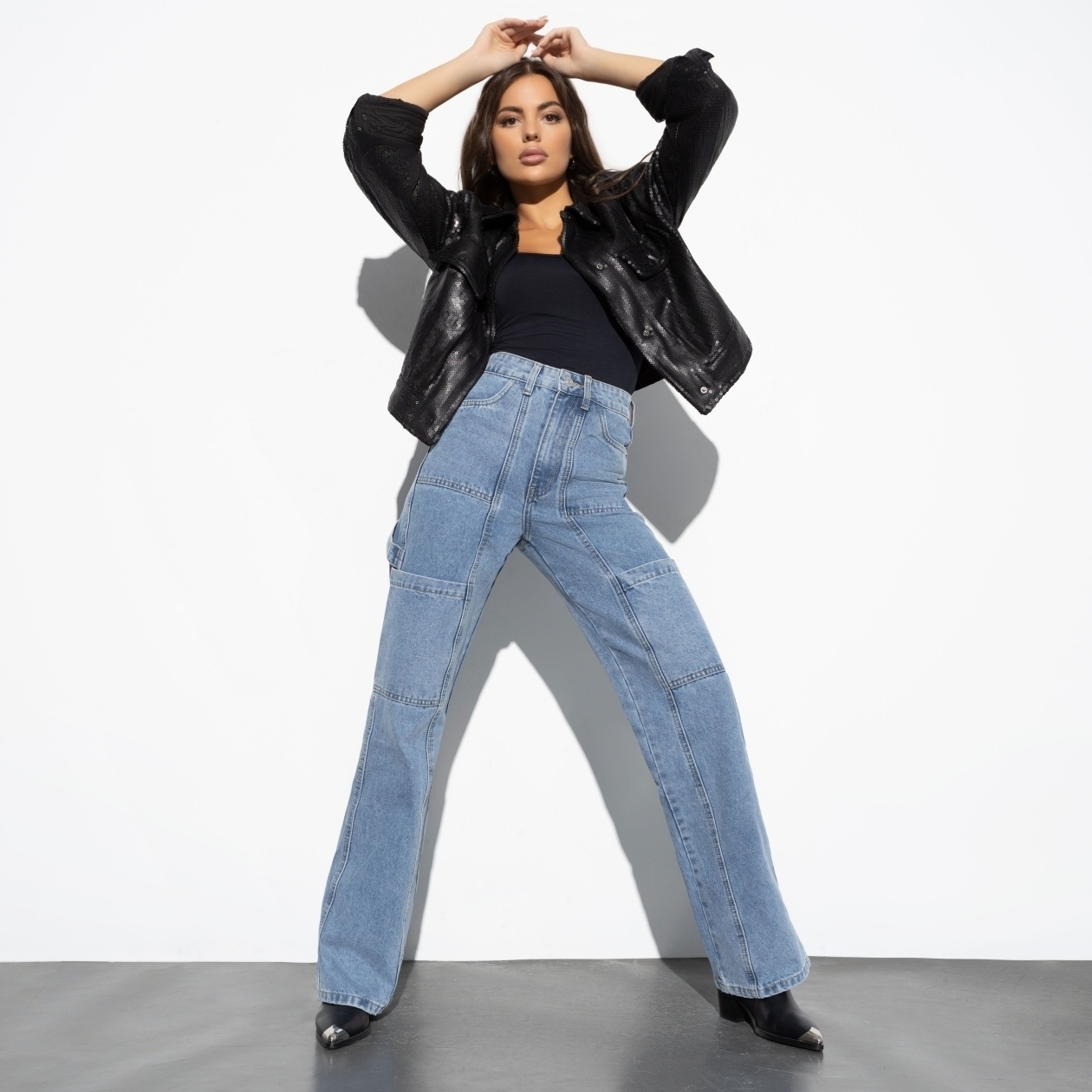 Байкерская эстетика в идеальном воплощении! Ты когда-нибудь хотела лететь навстречу ветру, крепко держась за спину друга? Может, уже делала так? В этих стилёвых джинсах идея прокатиться на мотоцикле легко станет реальностью.