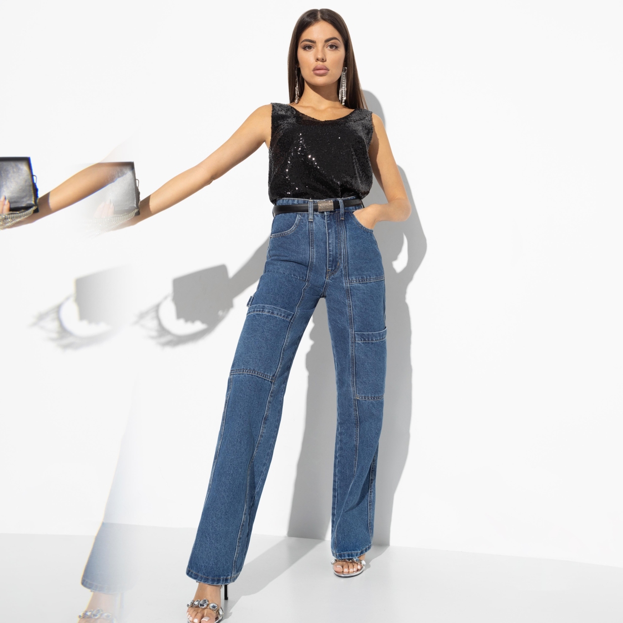 Уверенной походкой – на пути к счастью. Супер-стильные джинсы с трендовым силуэтом wide leg и актуальным кроем – мастхэв каждой активной девушки в этом сезоне. Классический синий оттенок – сочетай с чем захочешь.