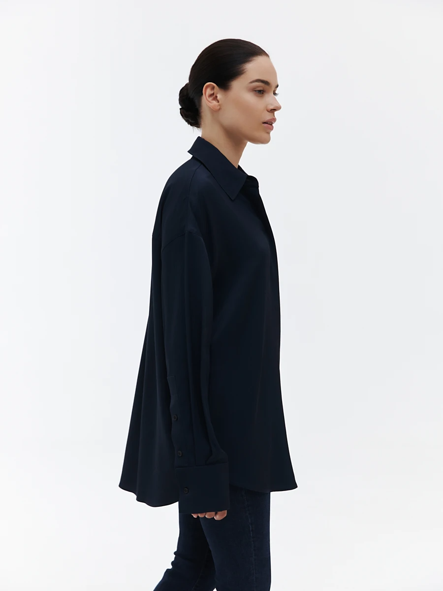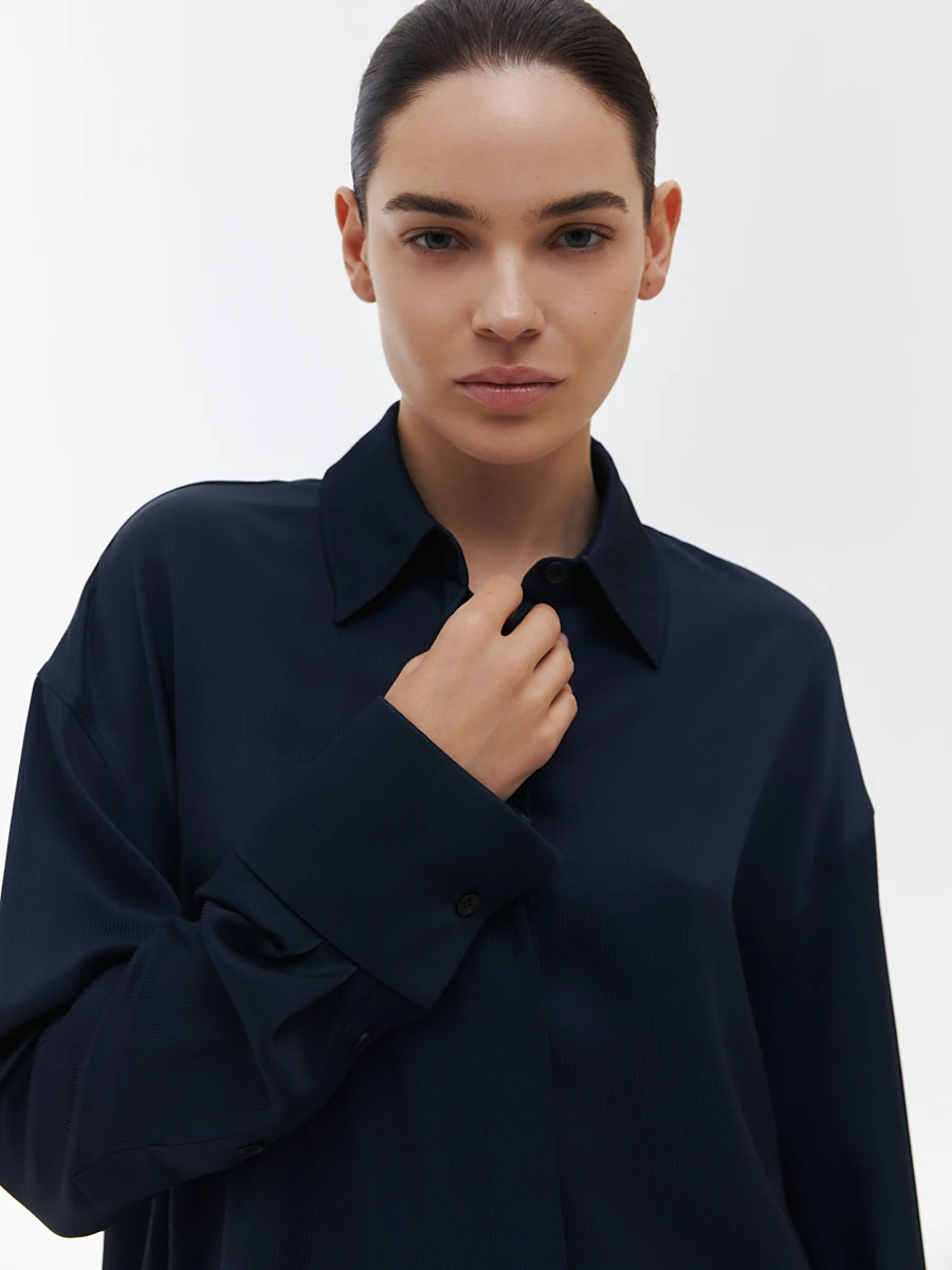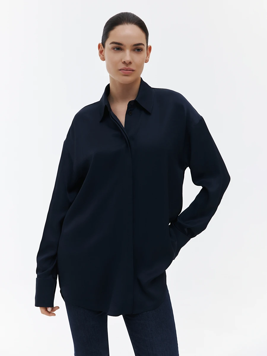 Ст.цена 2590р Прямая over size рубашка Синий 51.112.9039.029.1