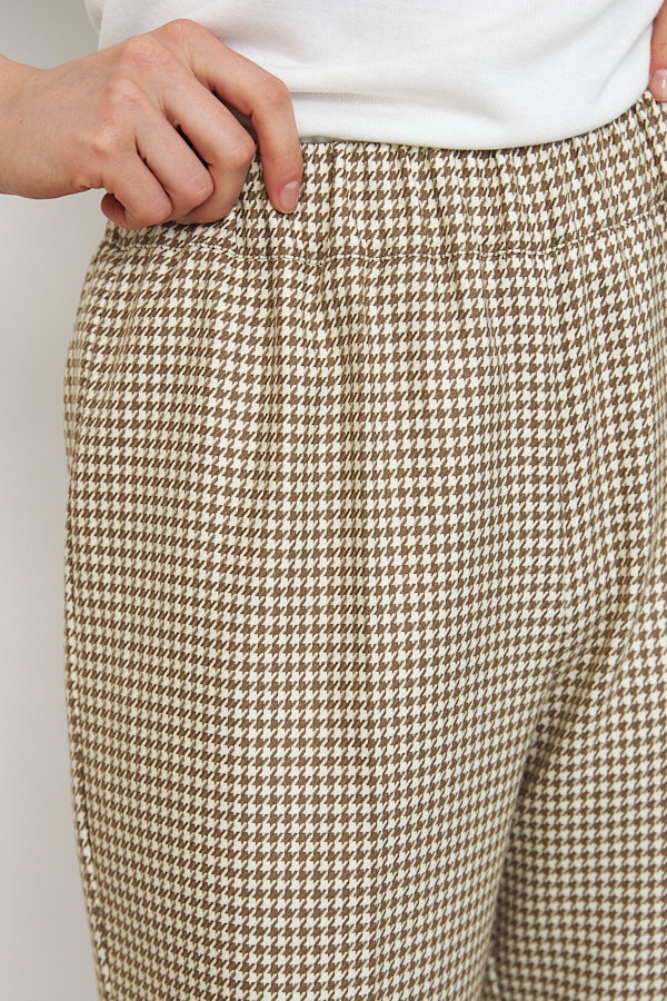Брюки прямого силуэта из костюмной ткани. Пояс притачной с эластичной резиной.