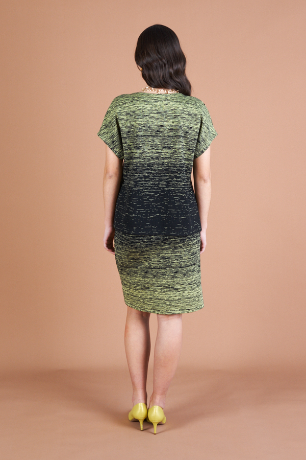 Джемпер и юбка из эластичного полотна. Джемпер свободного силуэта. Цельнокроеный короткий рукав. Круглый вырез горловины. Юбка прямого силуэта. Пояс с эластичной резиной обеспечивает хорошую посадку по фигуре.