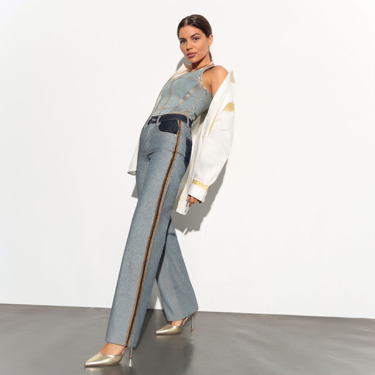 С восхитительными наружными швами, эти джинсы добавляют вашему облику приятный штрих индивидуальности. Выделяйтесь из толпы с элегантным и смелым стилем, который только усилит вашу привлекательность и уверенность. Джинсы Matera не просто одежда — это заявление, которое говорит о вашей утонченности и вкусе.