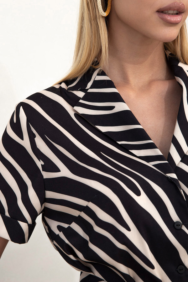 Платье из вискозной плательной ткани прямого силуэта с застёжкой на пуговицы. Втачной короткий рукав с отворотом. Вырез горловины оформлен английским воротником, который визуально сделает фигуру стройнее и подчеркнет красивую линию груди. В комплекте пояс из основной ткани.