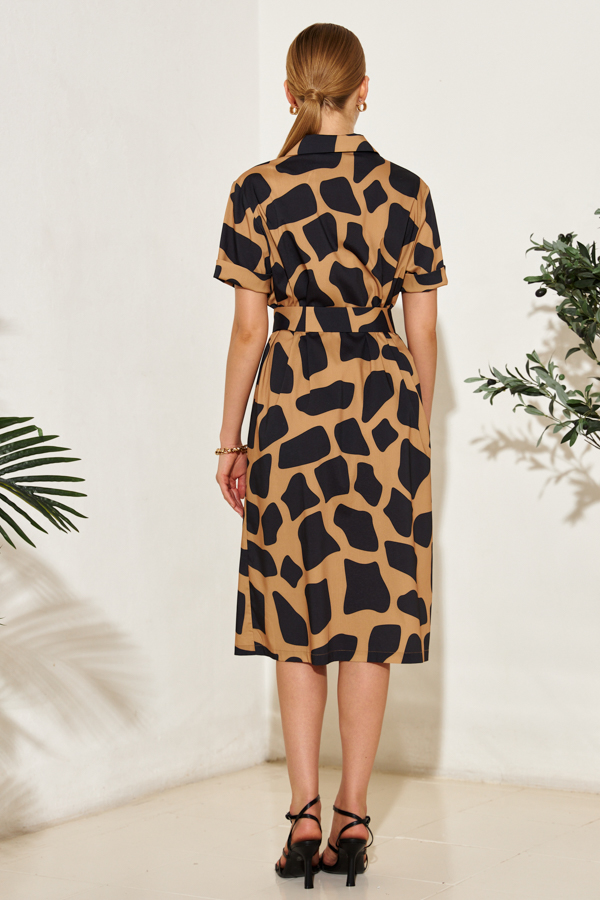 Платье из вискозной плательной ткани прямого силуэта с застёжкой на пуговицы. Втачной короткий рукав с отворотом. Вырез горловины оформлен английским воротником, который визуально сделает фигуру стройнее и подчеркнет красивую линию груди. В комплекте пояс из основной ткани.