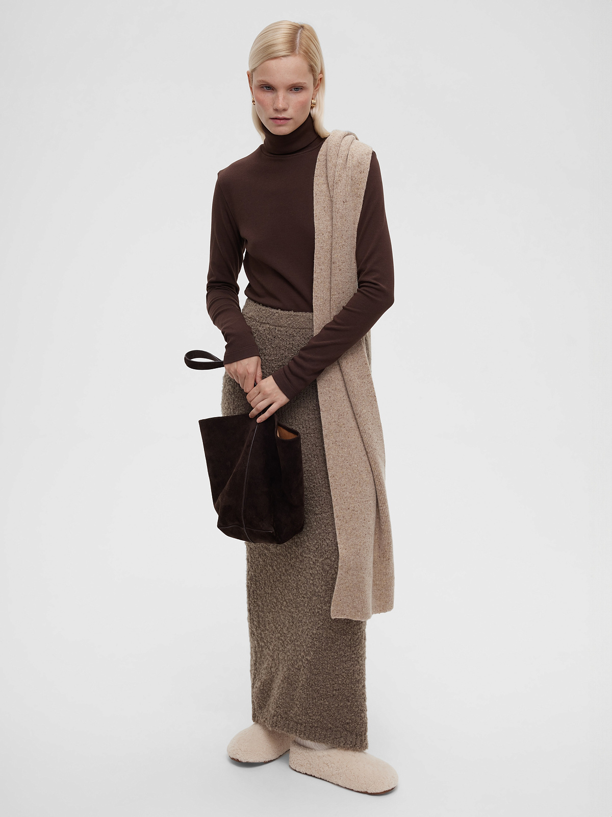 Юбка макси букле из альпаки и шерсти, бежевый