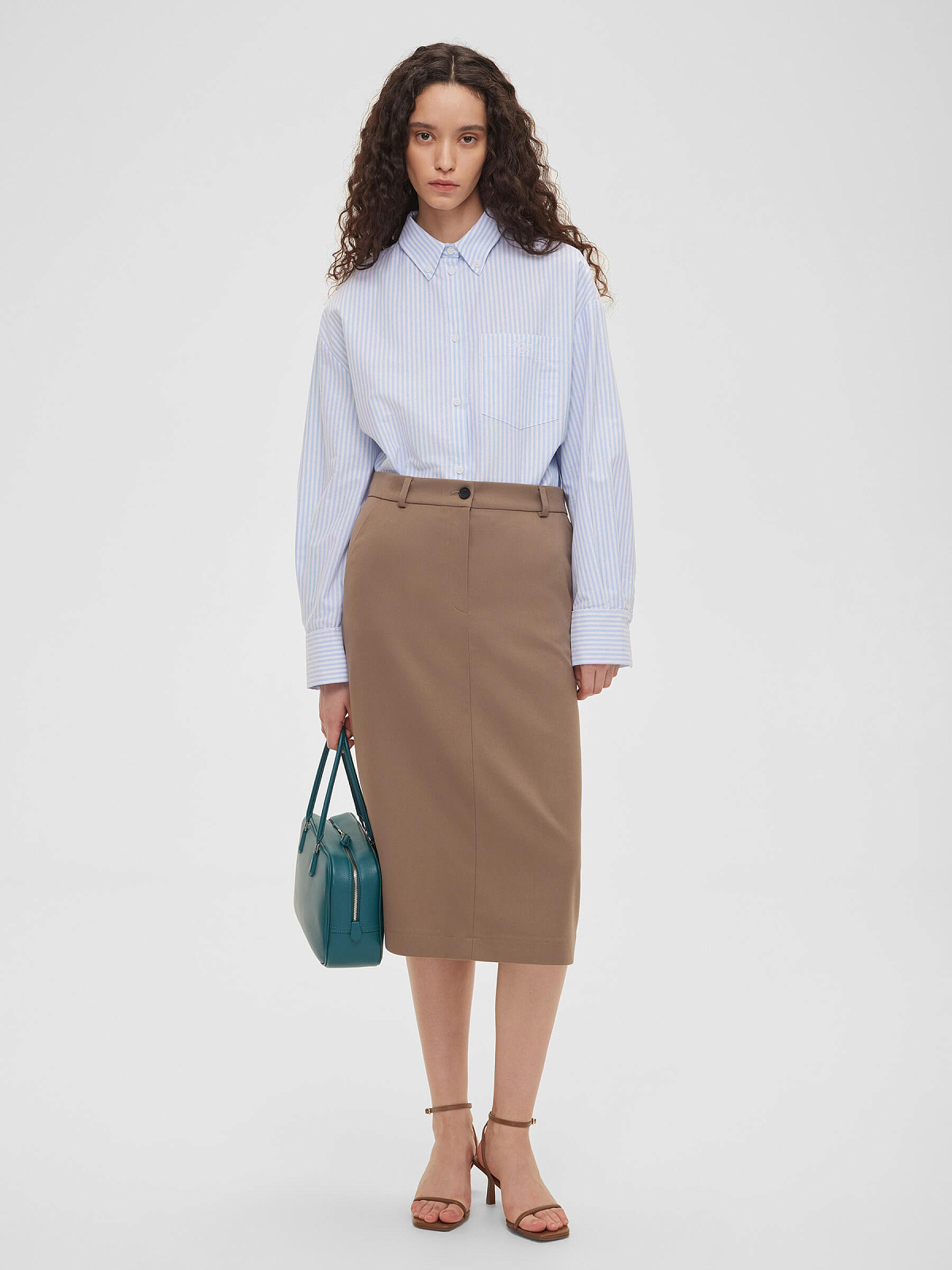 Ст.цена 4375р. Юбка миди прямая, светлый хаки