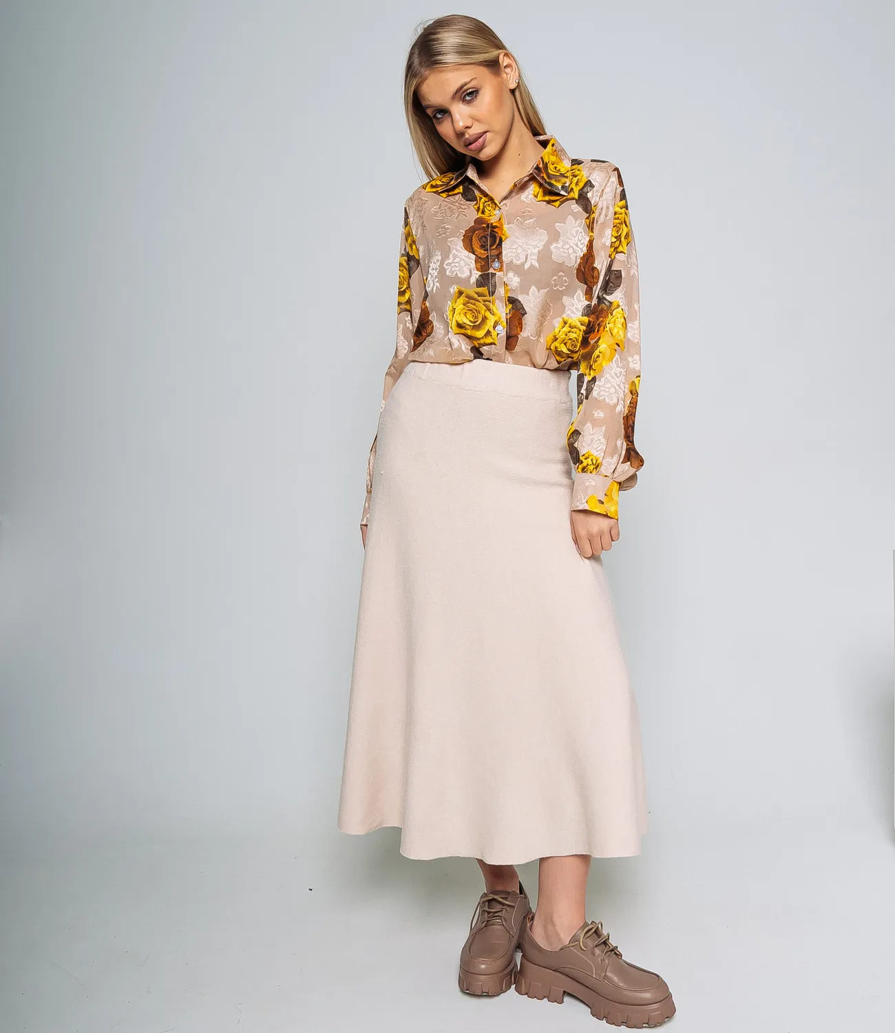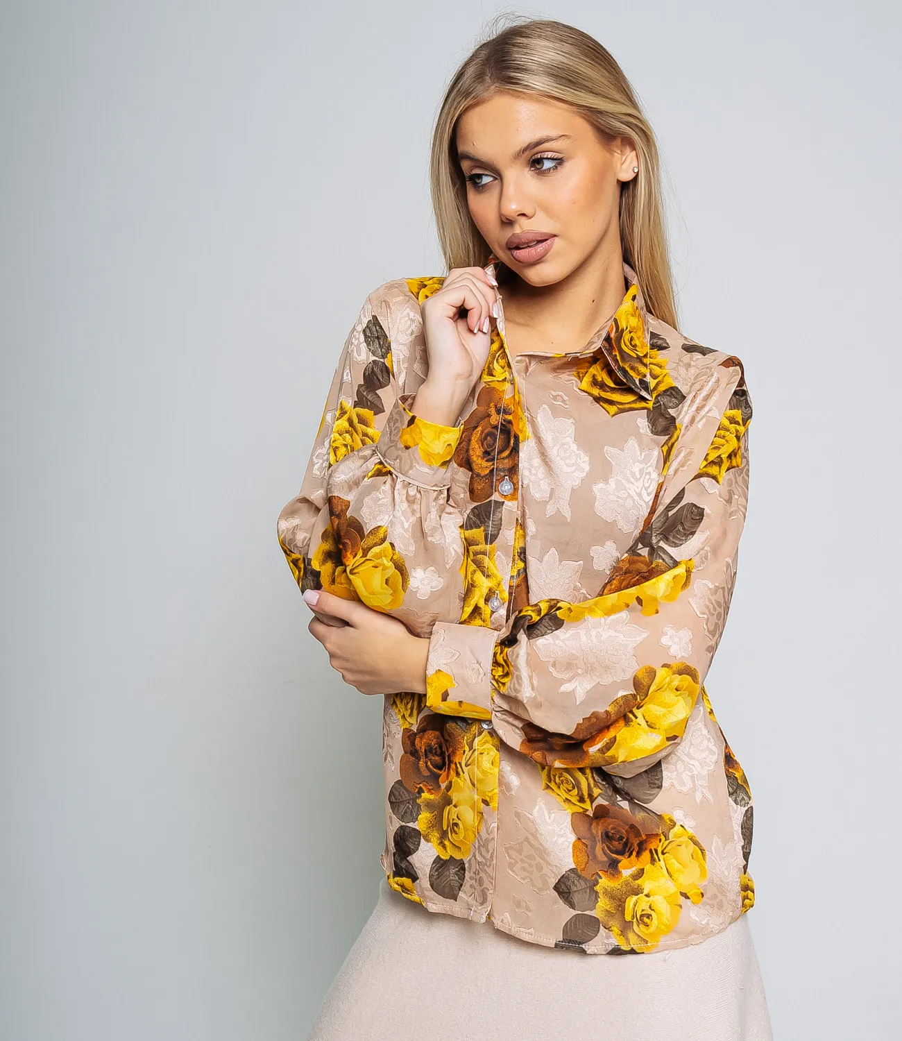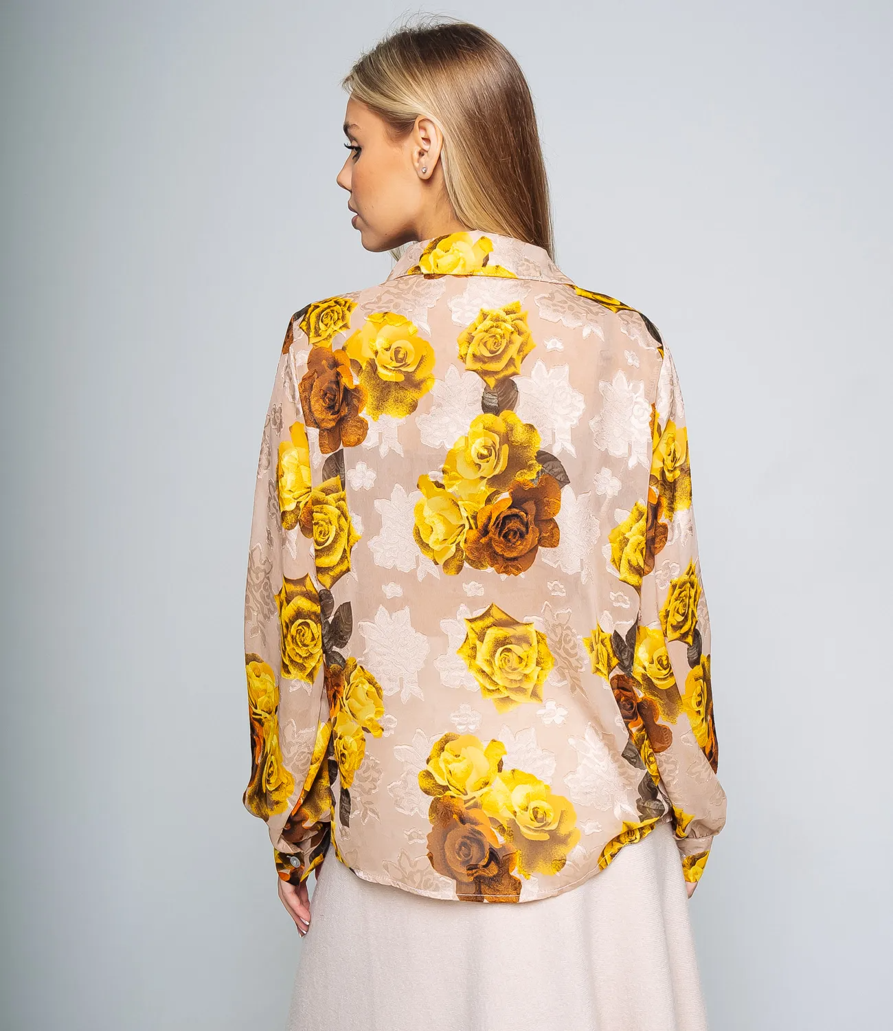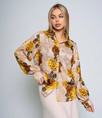 Легкая рубашка с широкими рукавами. Данная модель имеет яркий дизайн в крупных цветов.