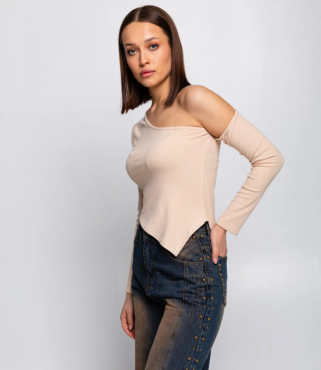 Укороченный кроп топ - это верхняя часть одежды с обрезанным подолом, который обычно заканчивается на уровне талии или ниже. Такой крой создает модный и современный вид, позволяя показать красивую линию талии и подчеркнуть формы. Комбинируйте кроп топ с высокой посадкой джинсами, юбкой или шортами для создания элегантного и стильного образа. Открытое плечо добавляет пикантности и сексуальности к кроп топу. Длинные рукава придают кроп топу изысканный и стильный вид.