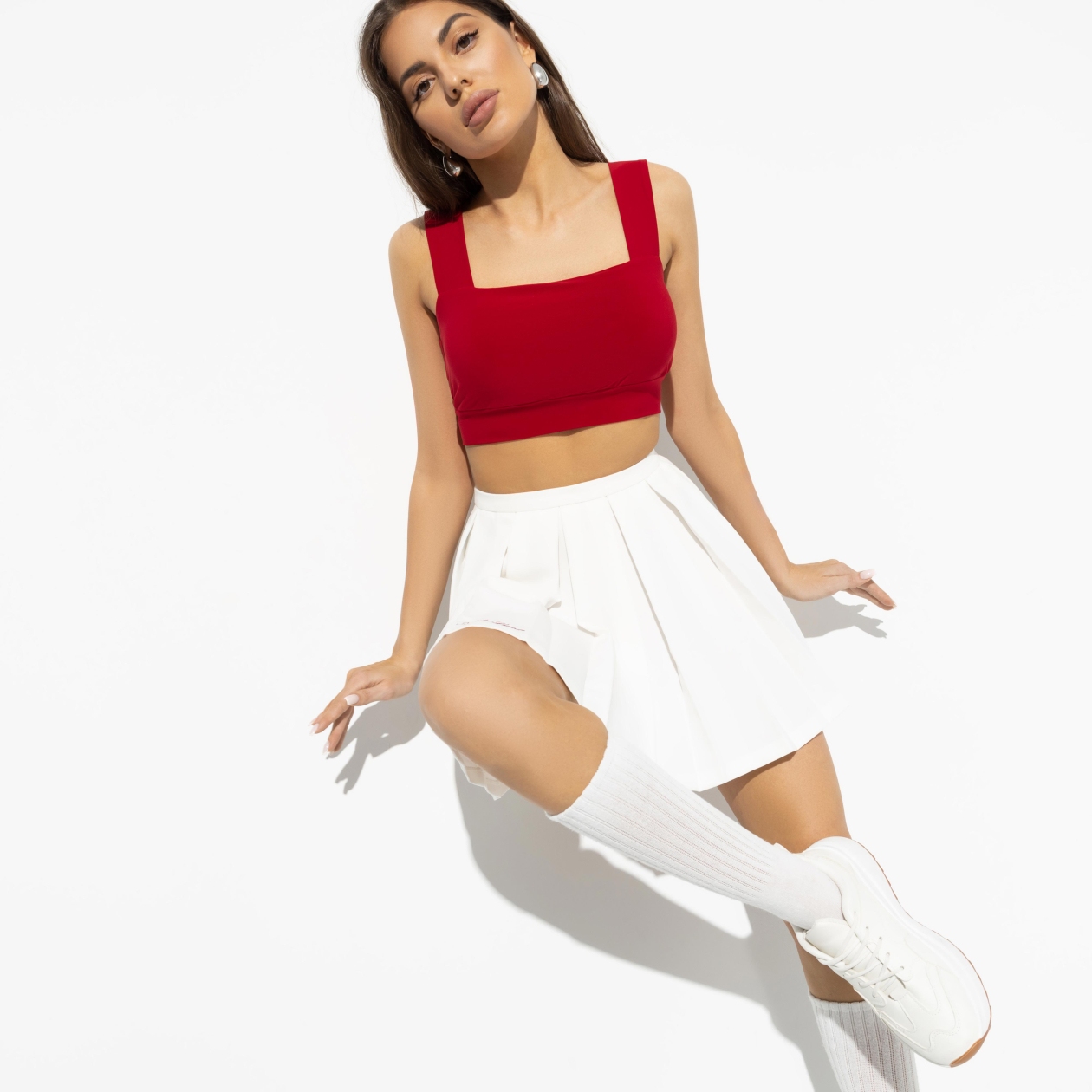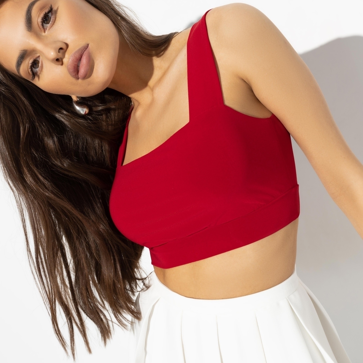 Как стакан гранатового сока утоляет жажду и улучшает здоровье, так и топ в оттенке граната дарит только положительные эмоции. В случае с соком все бенефиты только вам, а топ радует всех. Носите на здоровье.
