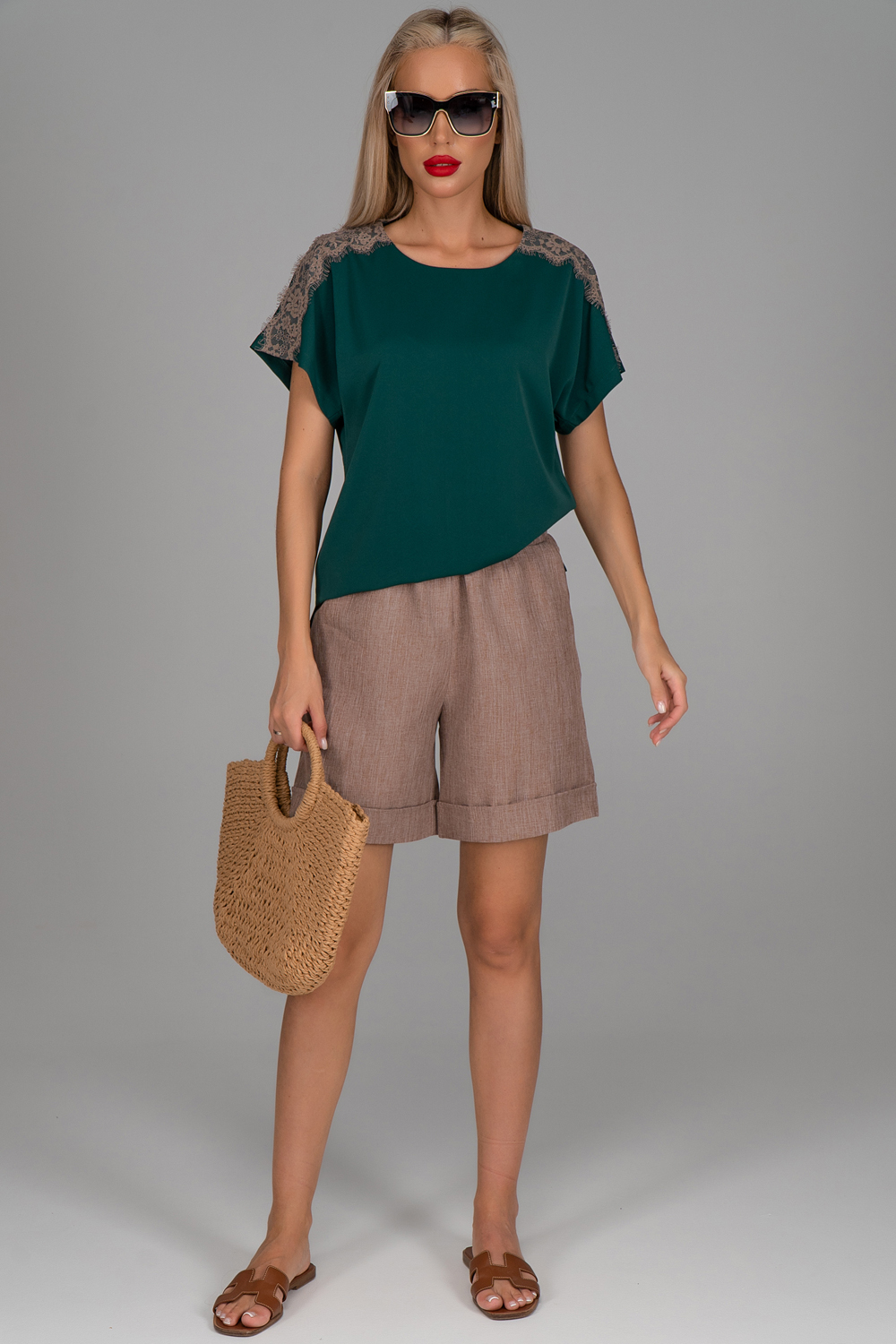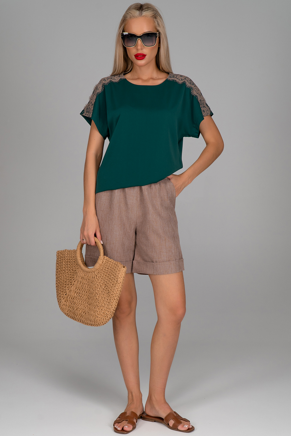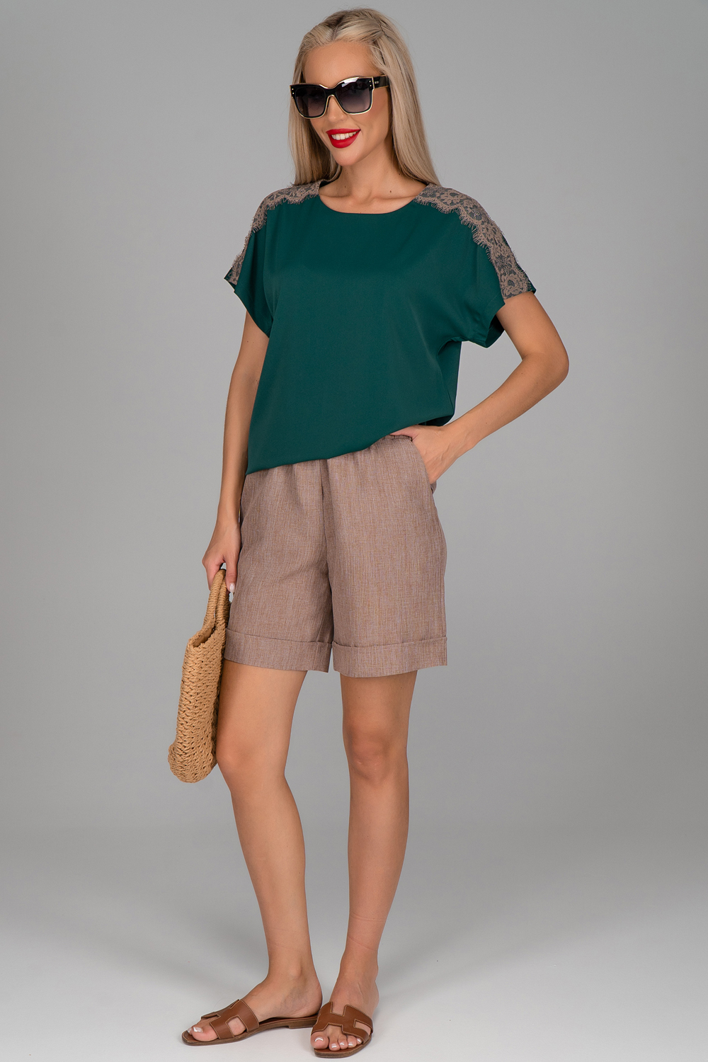 Легкая блузка “Келли” выполнена из комбинации двух разных видов ткани – кружево, искусственный шелк. Отлично садится по фигуре, подчеркивает ее достоинства, материал ткани плотный и держит форму.