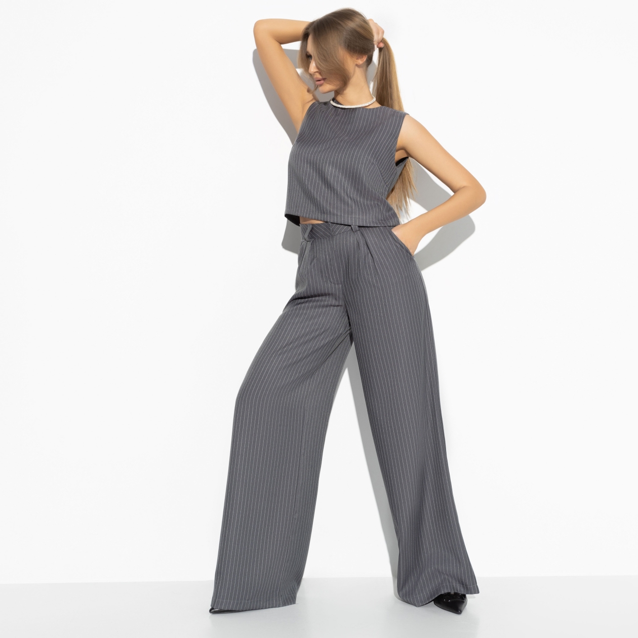 Этот топ «Иной смысл» — воплощение современного стиля и элегантности. Сделанный из высококачественной костюмной ткани, он подчеркивает ваш уникальный вкус и утонченный стиль. Трендовый принт в полоску придаст вашему образу свежесть и оригинальность, позволяя вам выделяться среди коллег. Этот топ — идеальный выбор для тех, кто стремится выглядеть стильно и профессионально в любой ситуации.