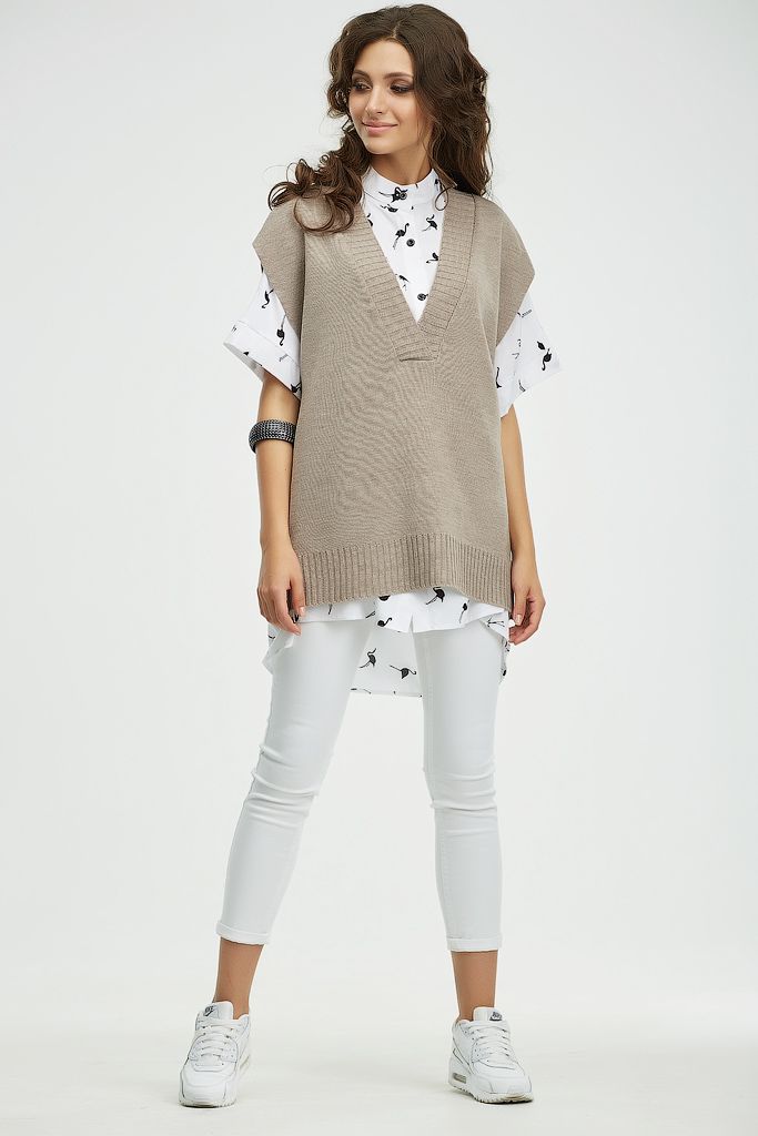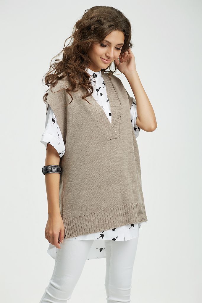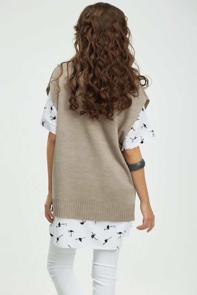 ст. цена1293руб.! Жилет вязаный оверсайз с разрезами бежевый