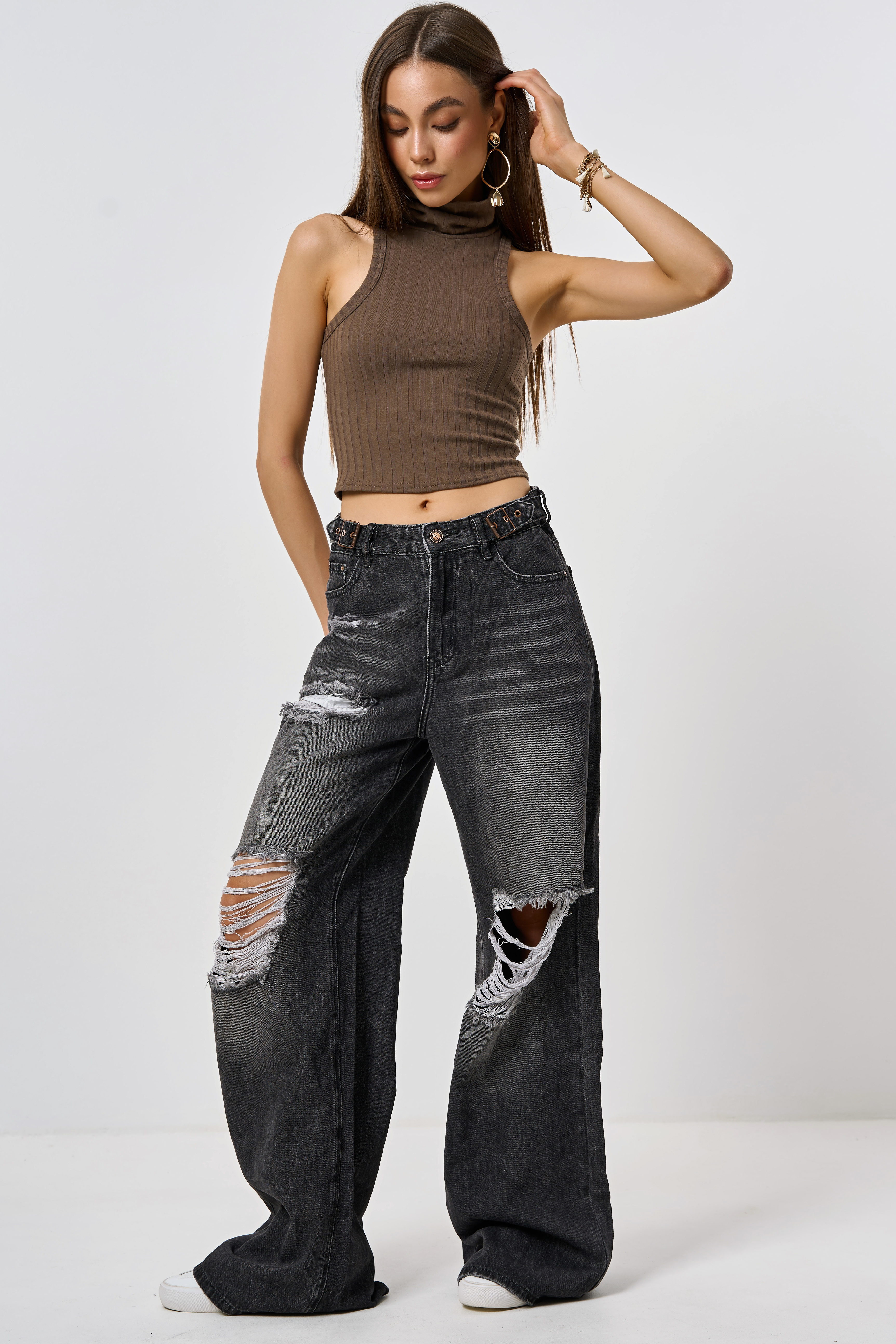 ст. цена1750руб.! Топ из трикотажа с воротником стойка какао