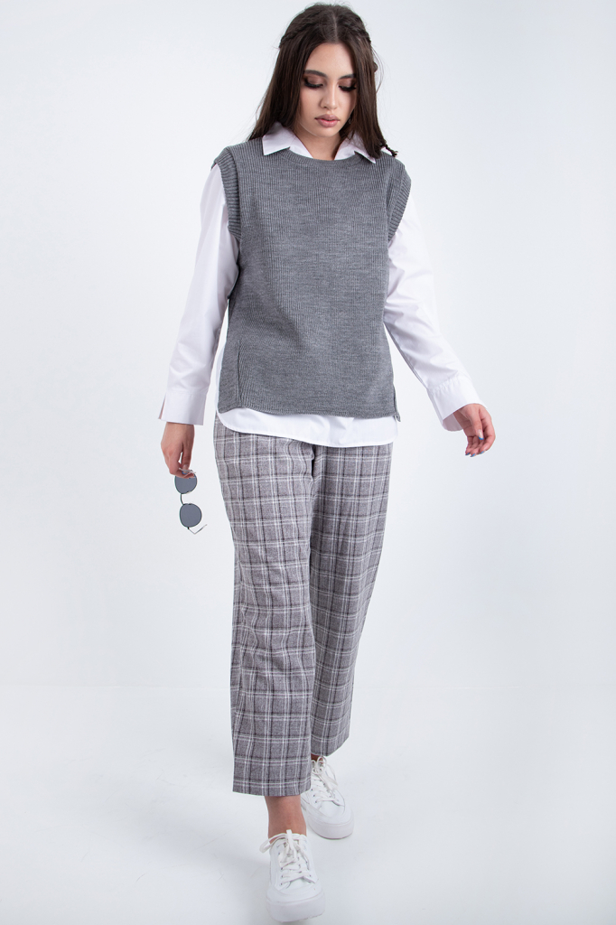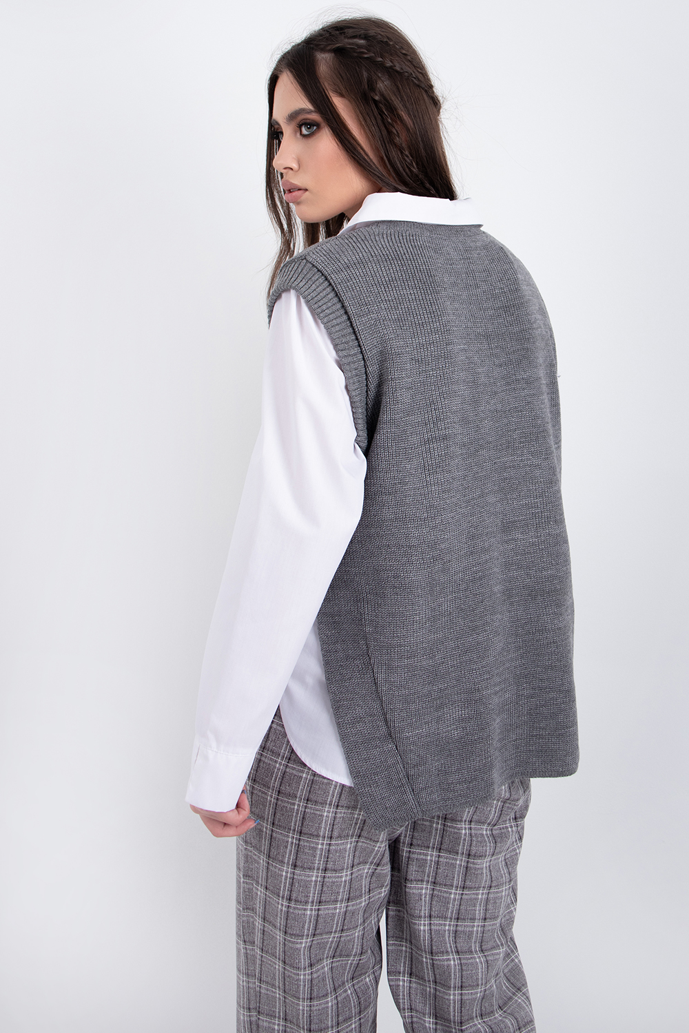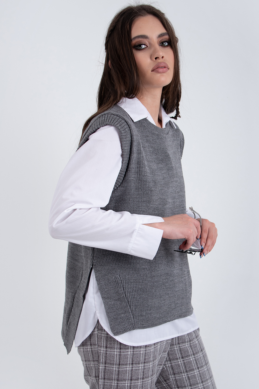 ст. цена1760руб.! Жилет вязаный оверсайз асимметричный с разрезами по бокам серый меланж