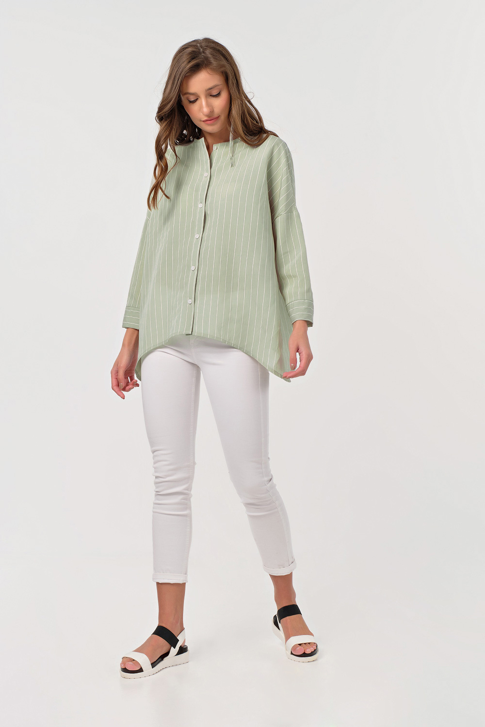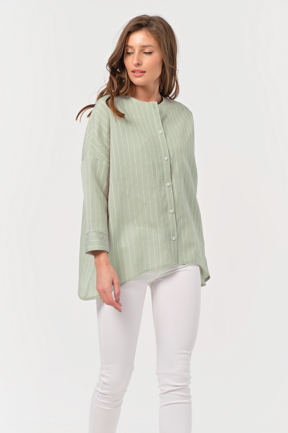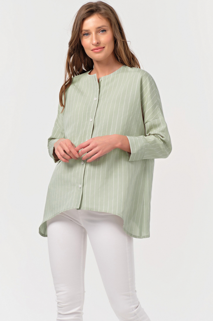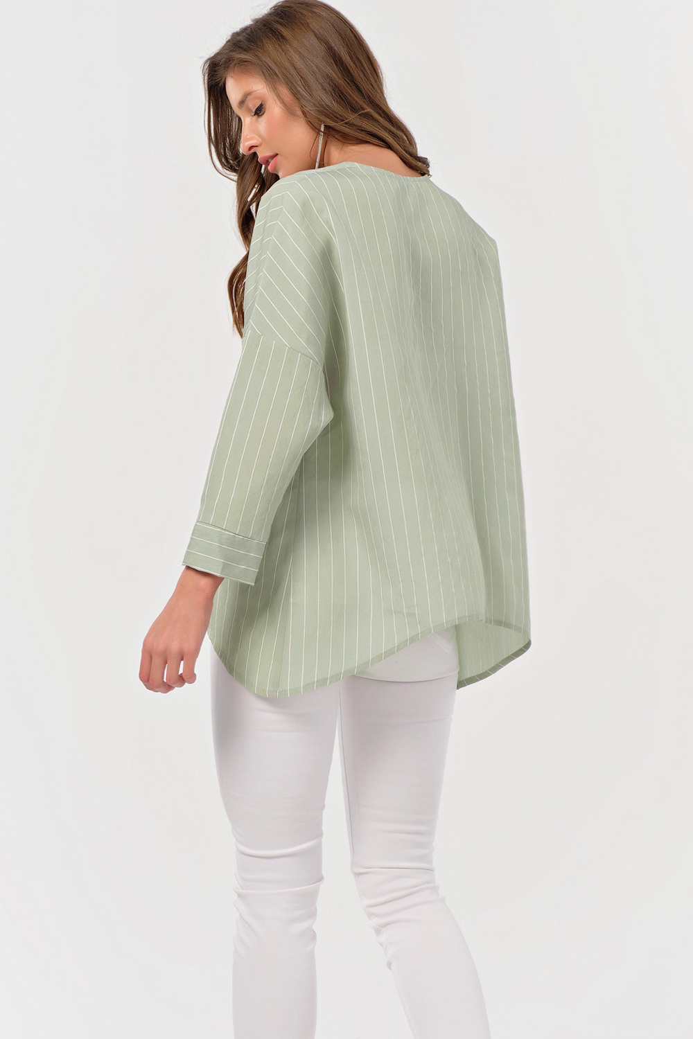 ст. цена1778руб.! Блузка свободная на пуговицах в полоску на зеленом