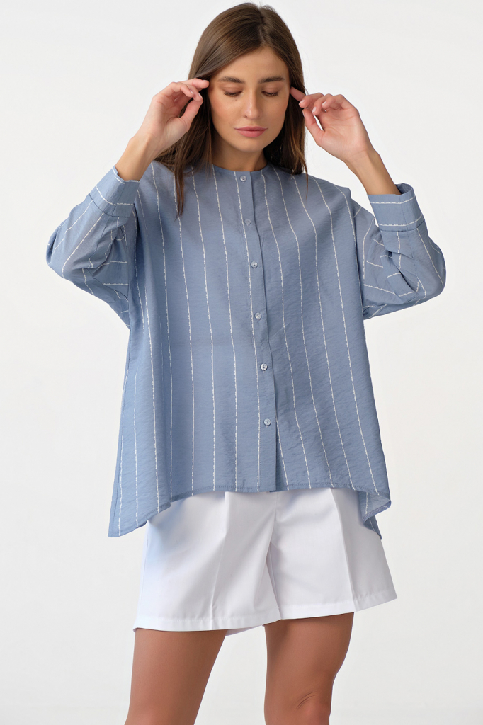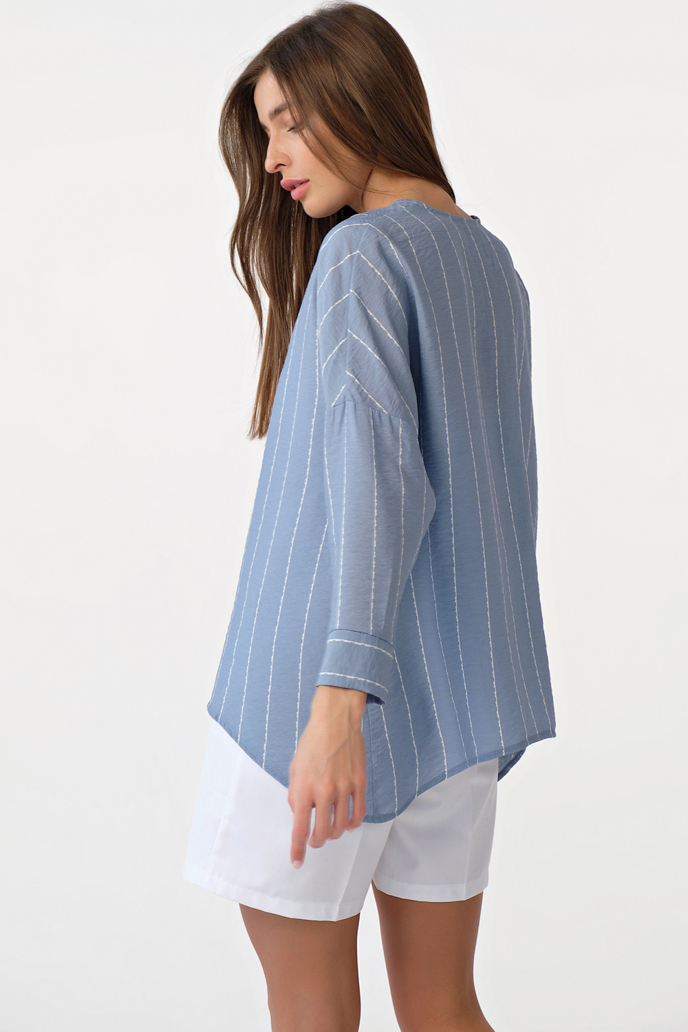 ст. цена1863руб.! Блузка свободная на пуговицах в полоску на голубом