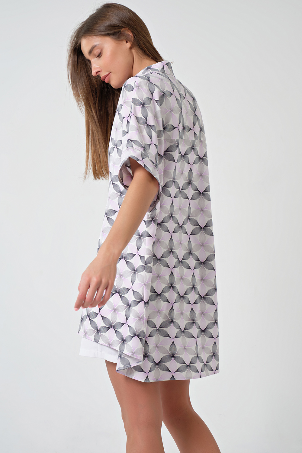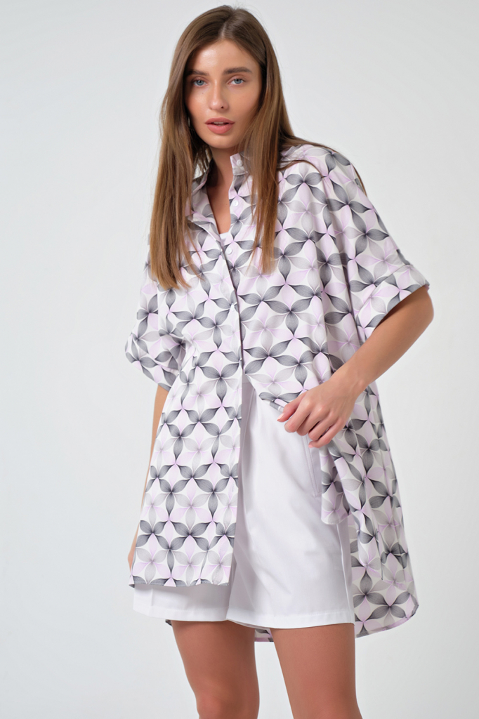 ст. цена1971руб.! Рубашка летняя оверсайз с коротким рукавом с принтом на белом
