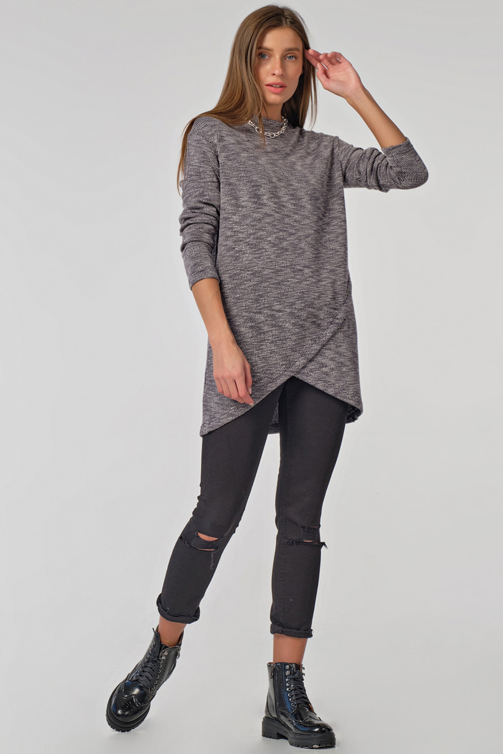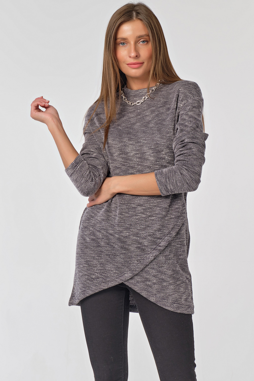 ст. цена2017руб.! Туника трикотажная теплая с запахом темно-серая