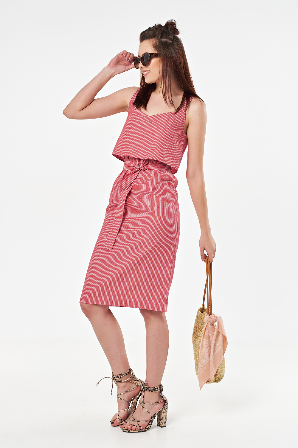 ст. цена2094руб.! Сарафан легкий на широких бретельках из хлопка в полоску на красном
