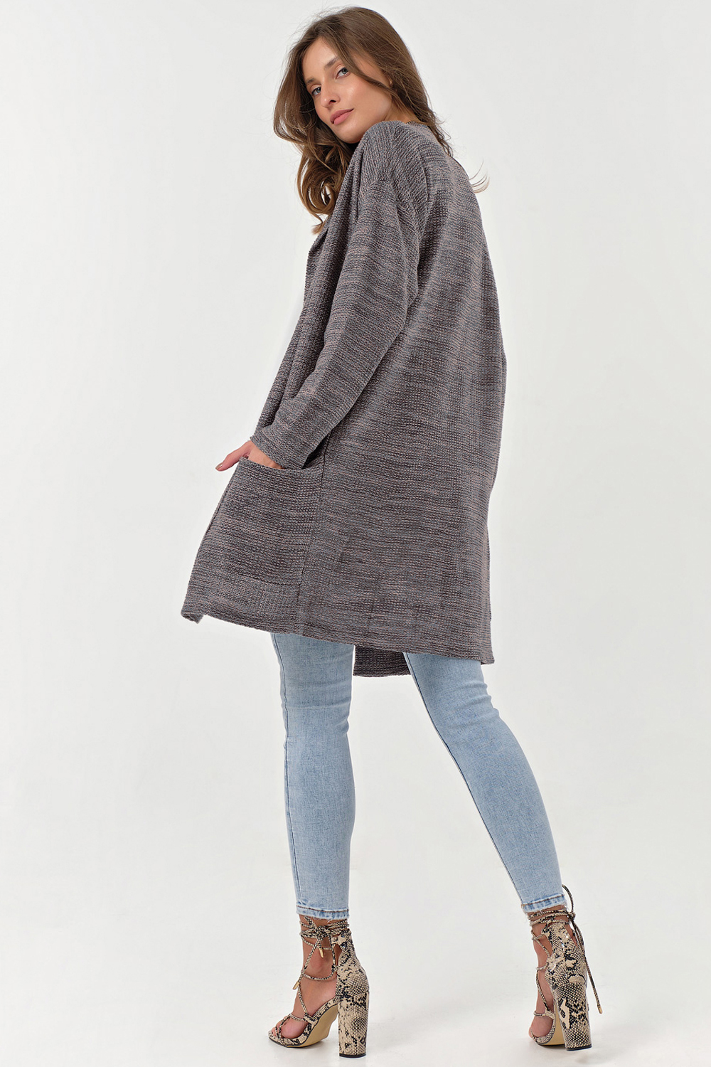 ст. цена2202руб.! Кардиган вязаный теплый свободный с карманами серо-бежевый