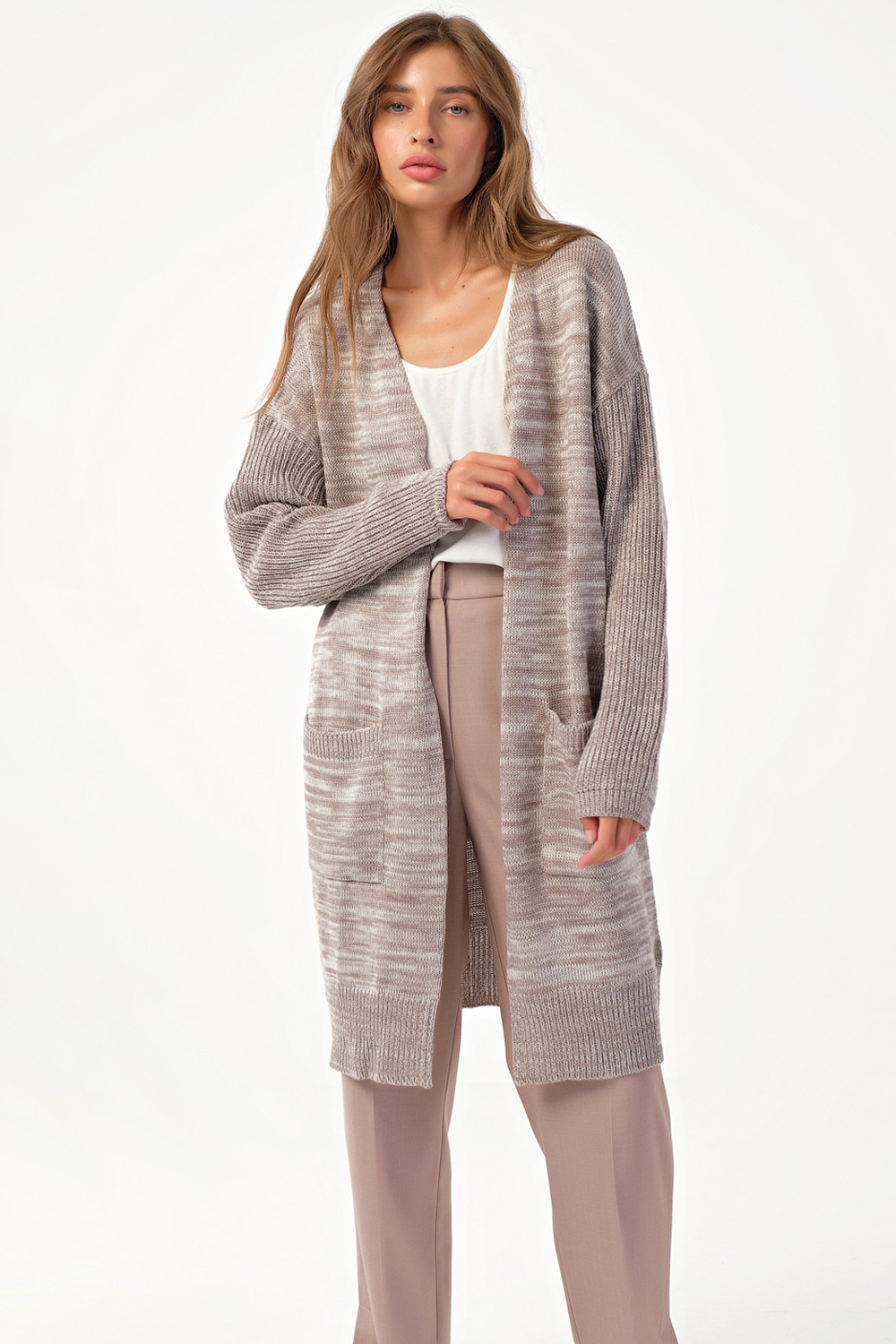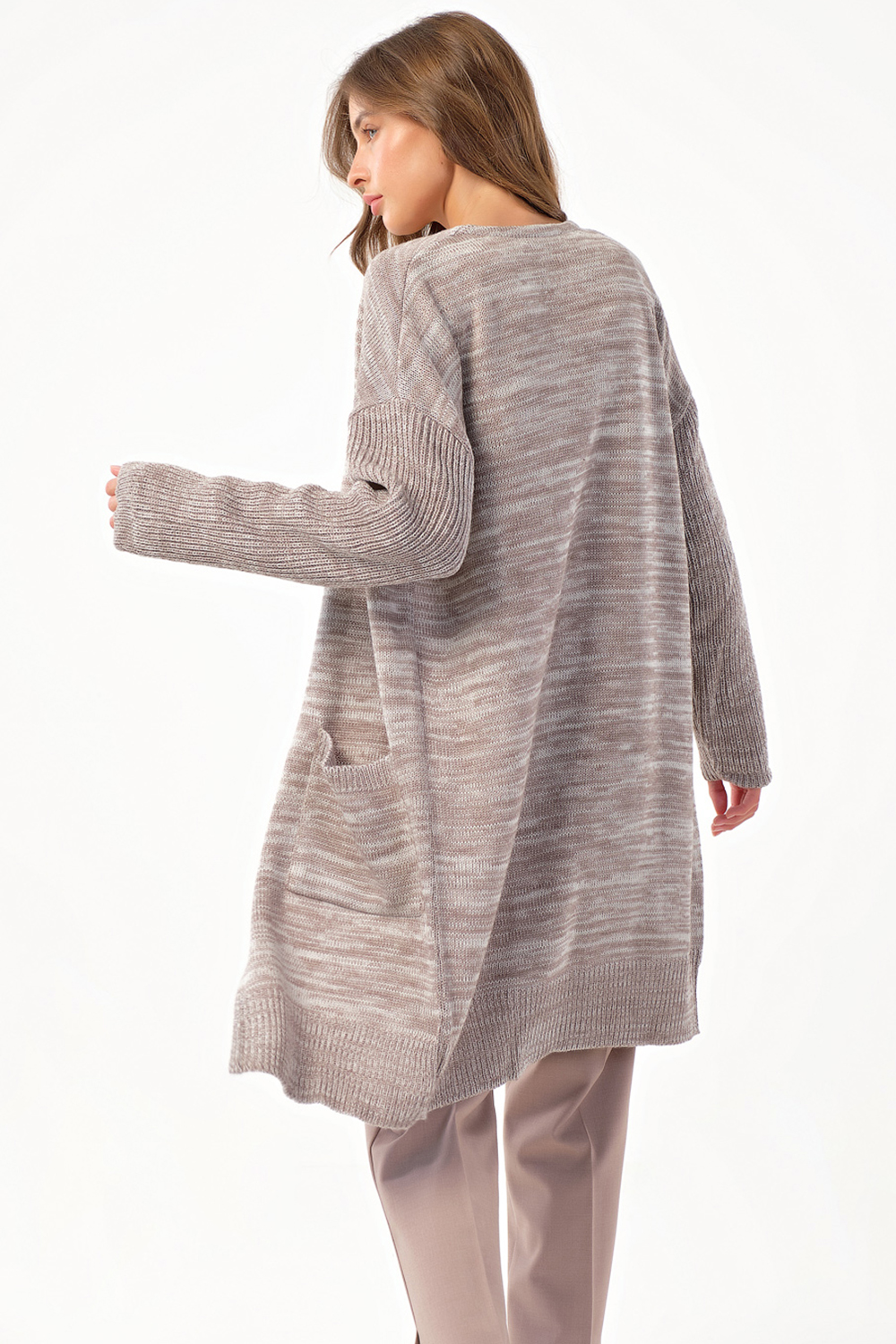 ст. цена2256руб.! Кардиган вязаный оверсайз с карманами бежевый меланж