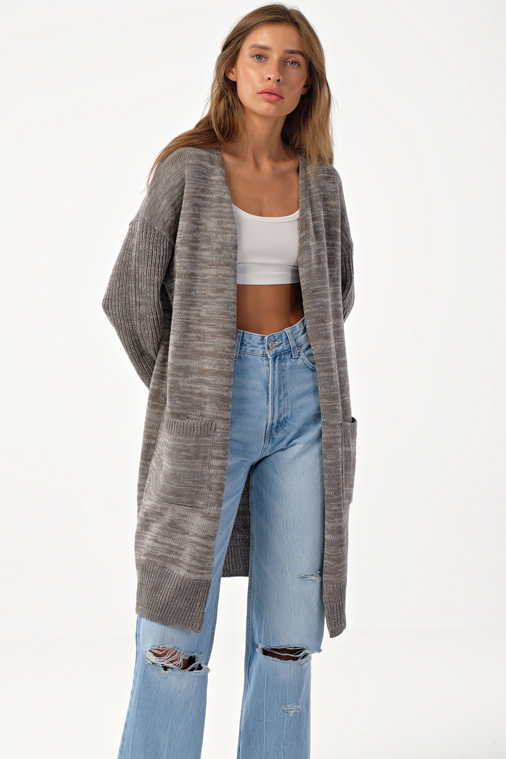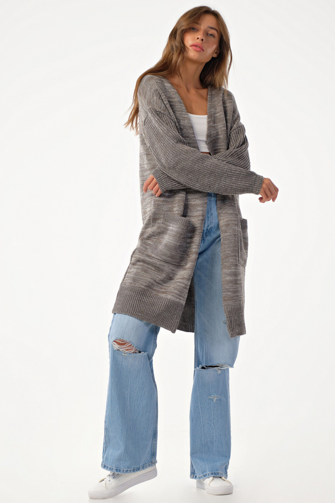 ст. цена2256руб.! Кардиган вязаный оверсайз с карманами серый