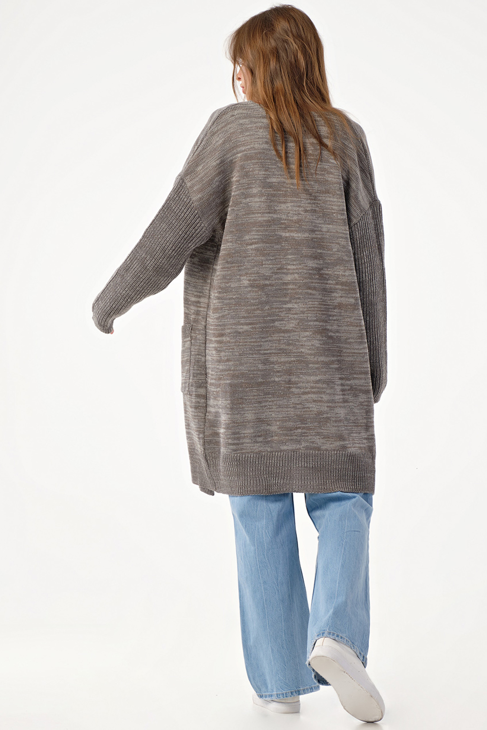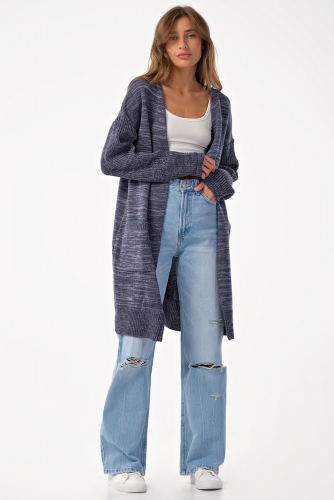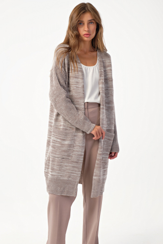 Особенности: Вязаный кардиган свободного силуэта без застежки выполнен из объемной фактурной меланжированной пряжи.                 Данная модель с объемом Oversize имеет свободную посадку, если вы предпочитаете классическое облегание, рекомендуем выбрать меньший размер.