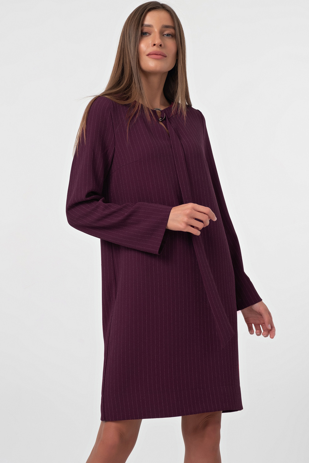 ст. цена2379руб.! Платье повседневное прямое в полоску на винном