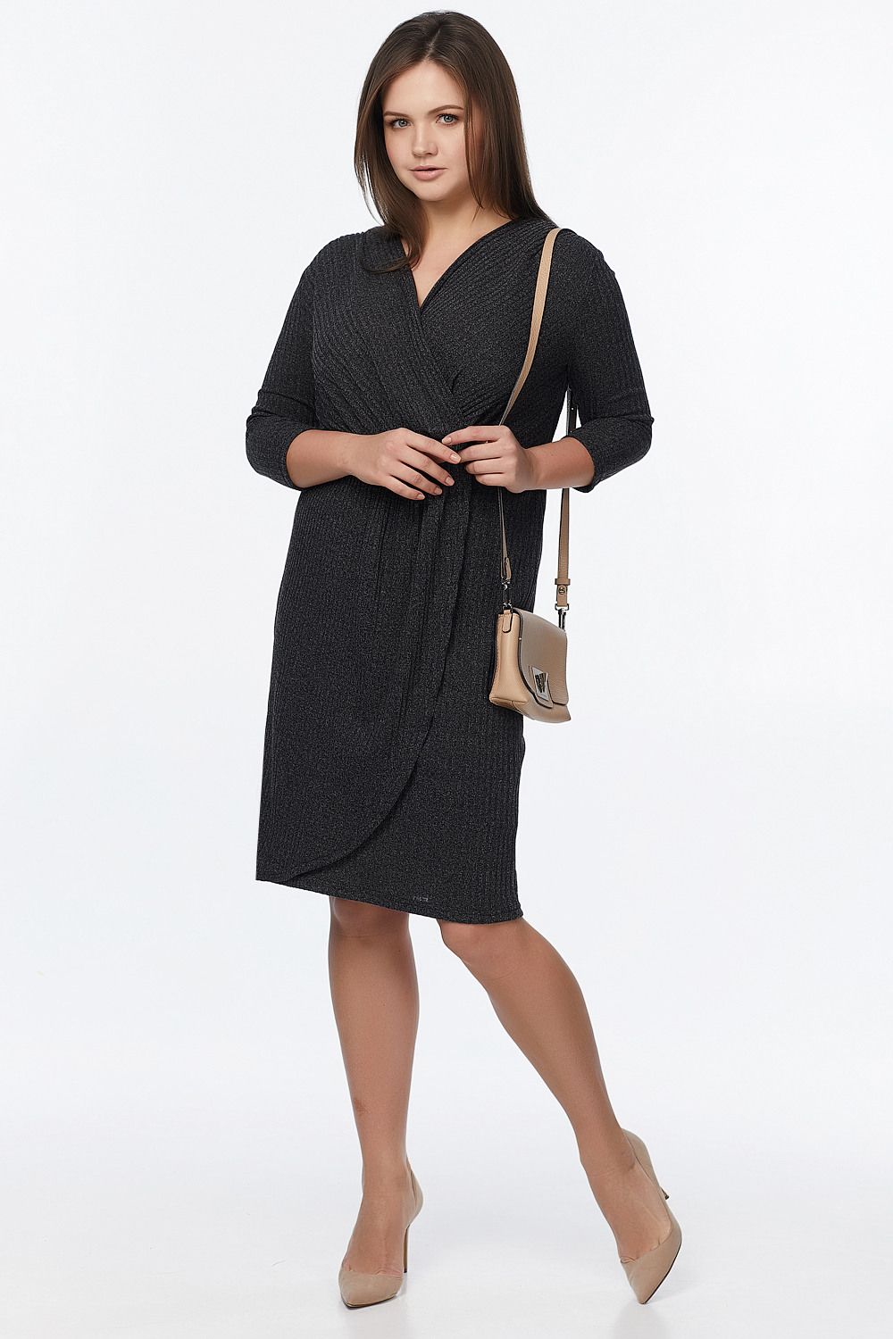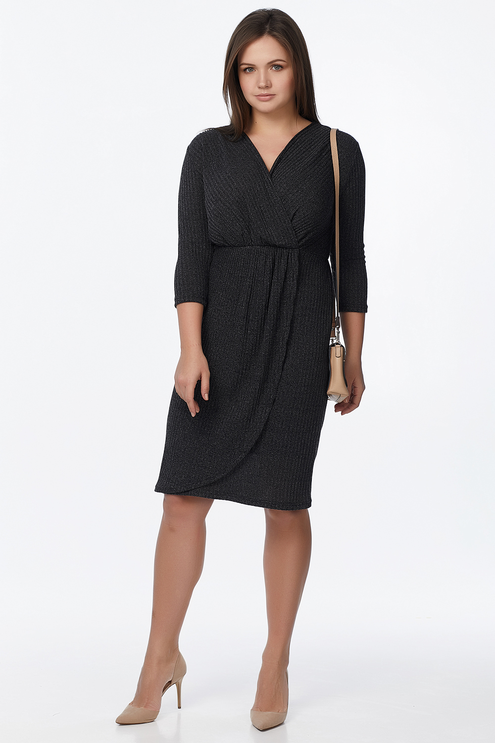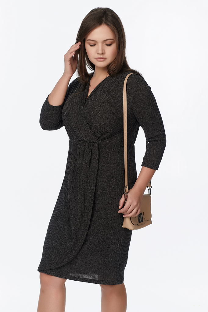 ст. цена2379руб.! Платье трикотажное прилегающее с запахом большого размера черное