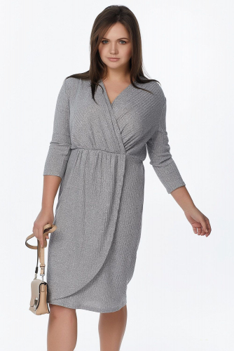 ст. цена2379руб.! Платье трикотажное прилегающее с запахом большого размера серое