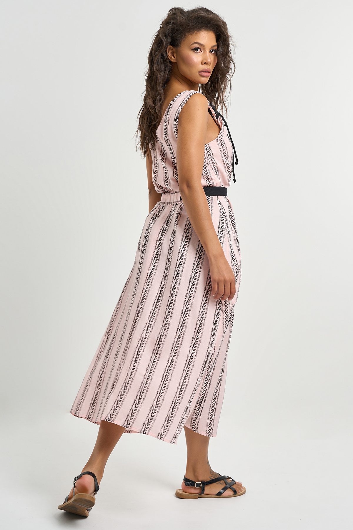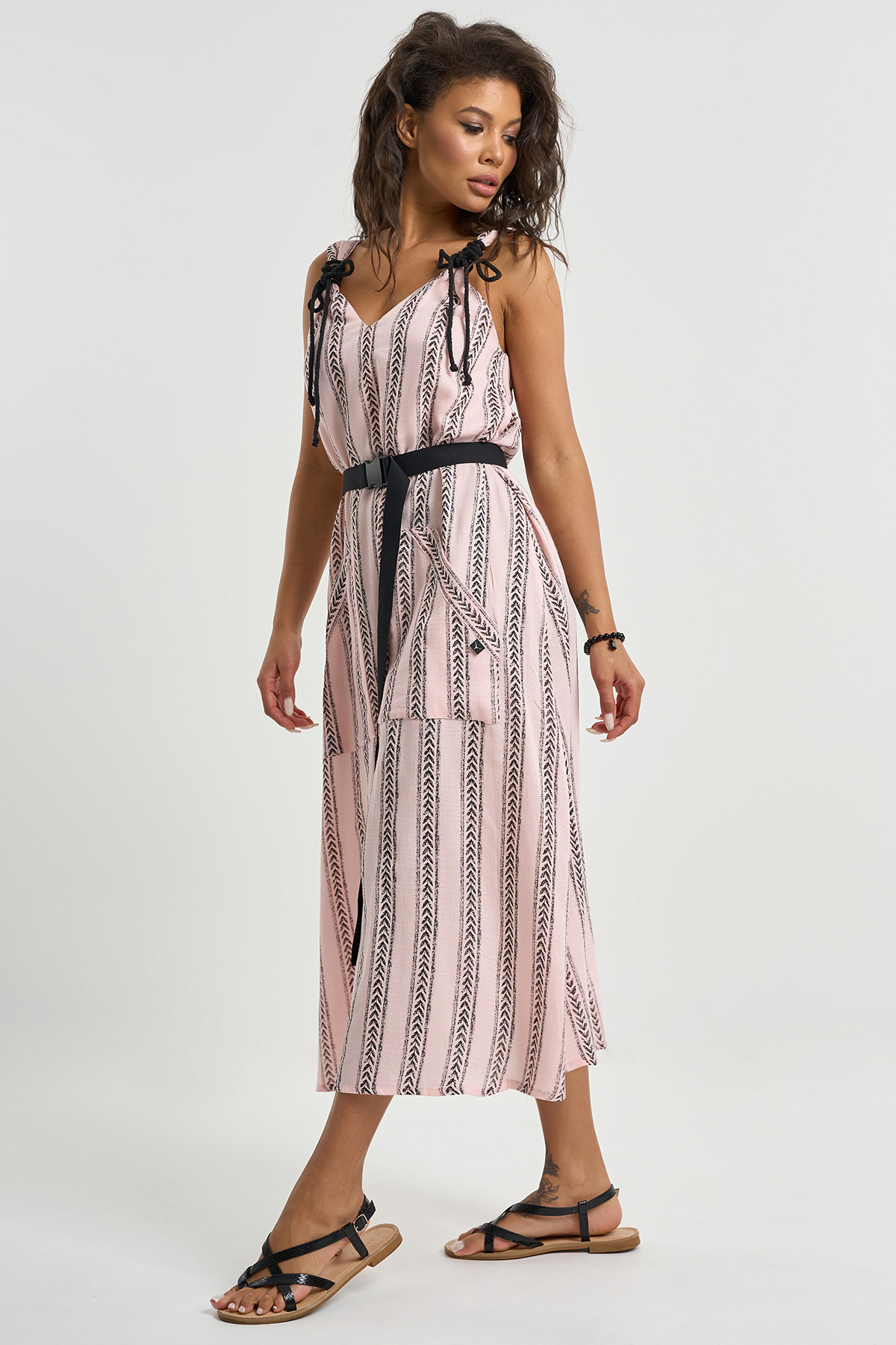 ст. цена2560руб.! Платье хлопковое с поясом принт на бледно-розовом