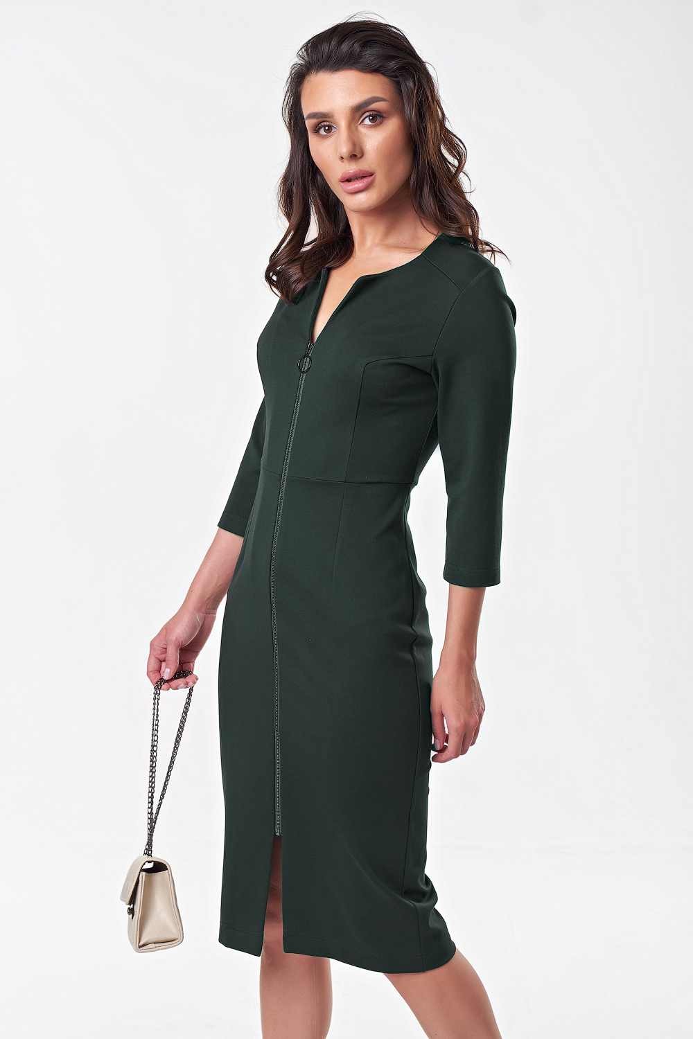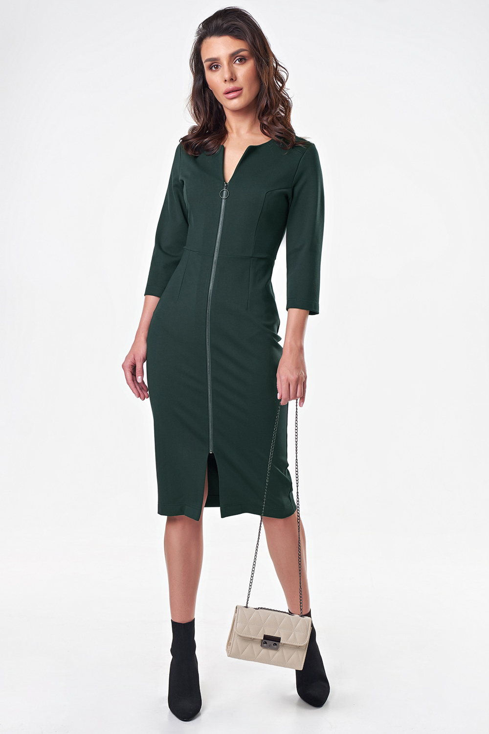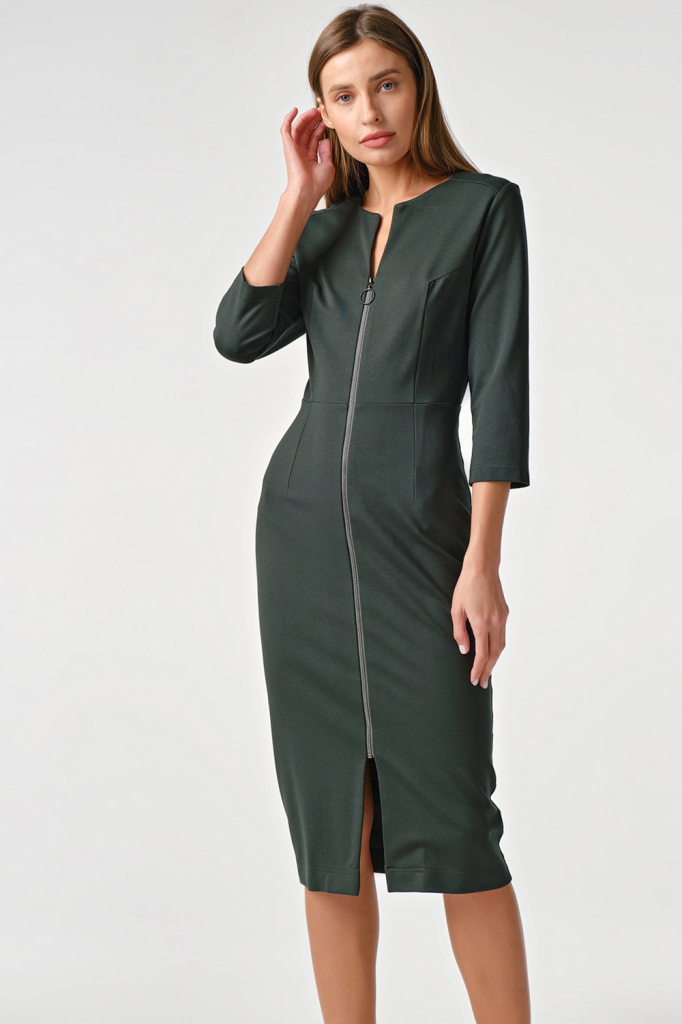 ст. цена2687руб.! Платье трикотажное миди с замком спереди темно-зеленое