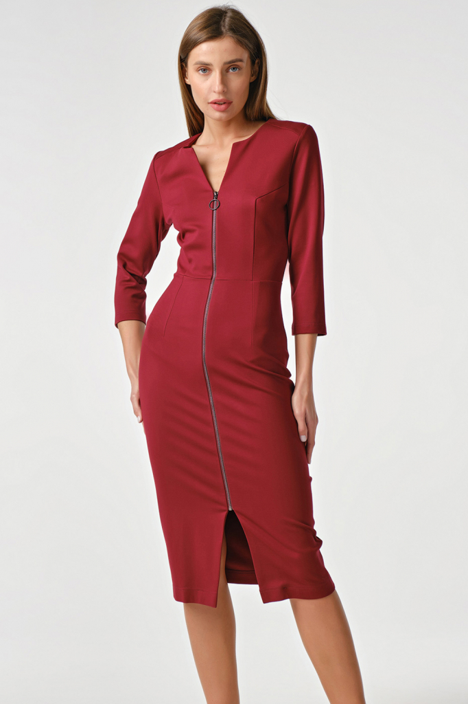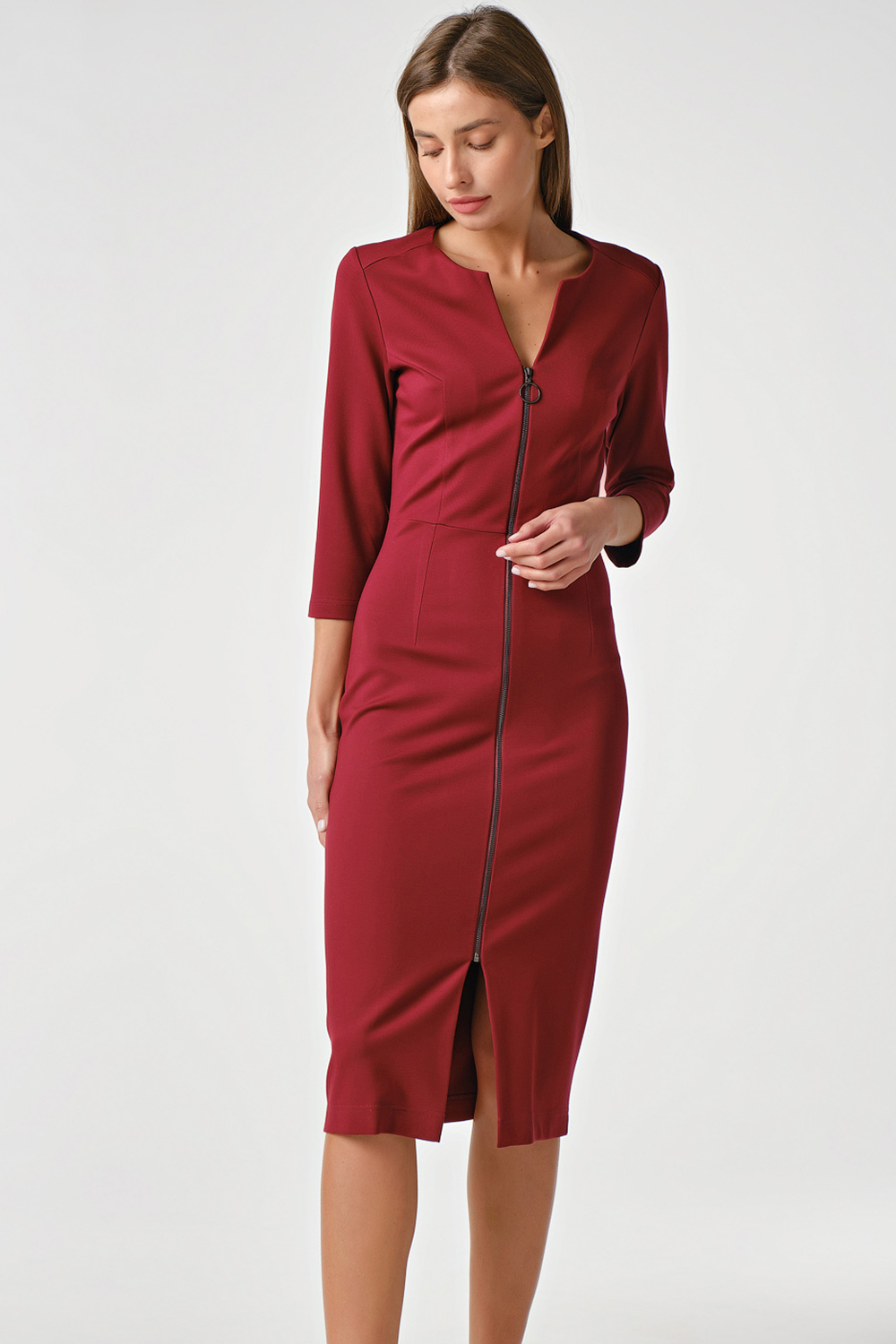 ст. цена2687руб.! Платье трикотажное миди с замком спереди винное
