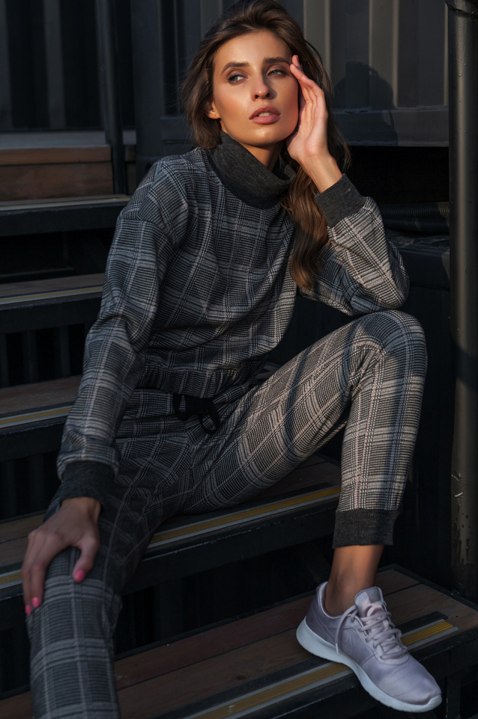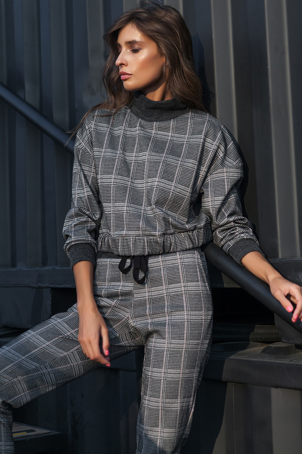 ст. цена2733руб.! Костюм повседневный теплый из трикотажа в клетку черный