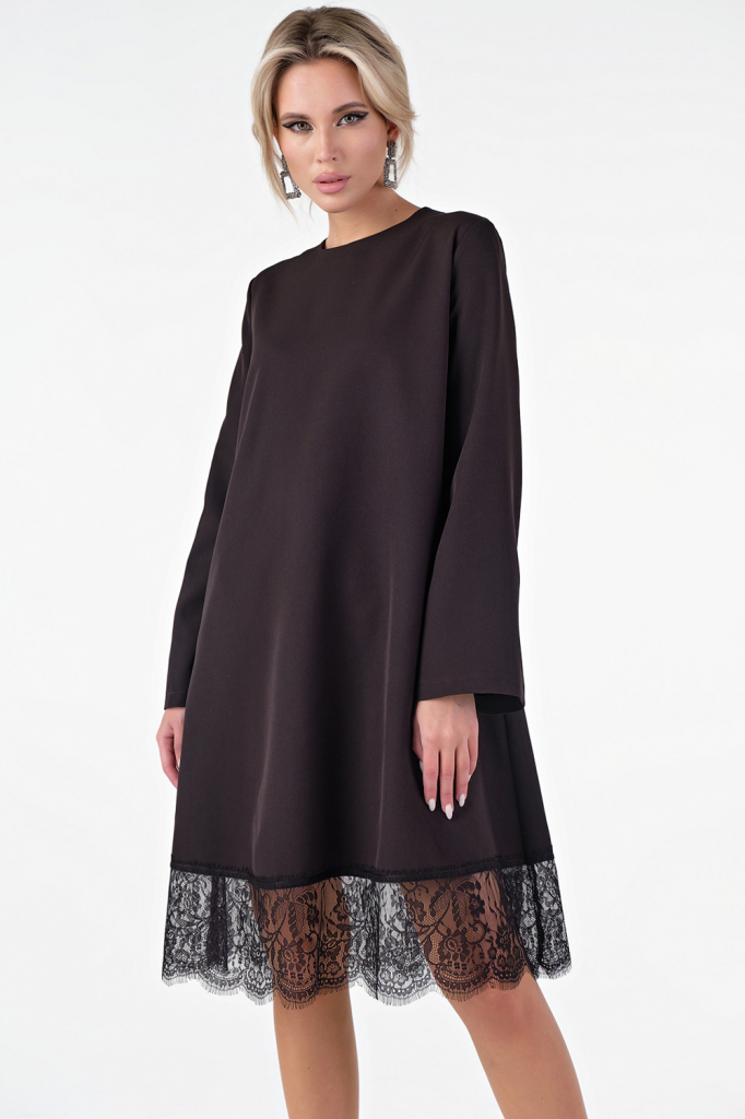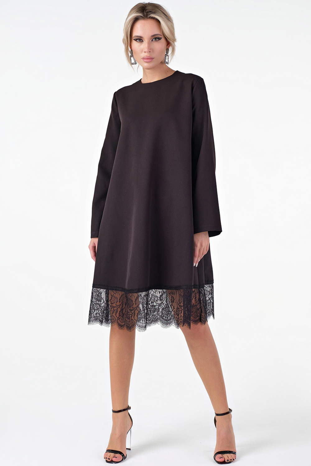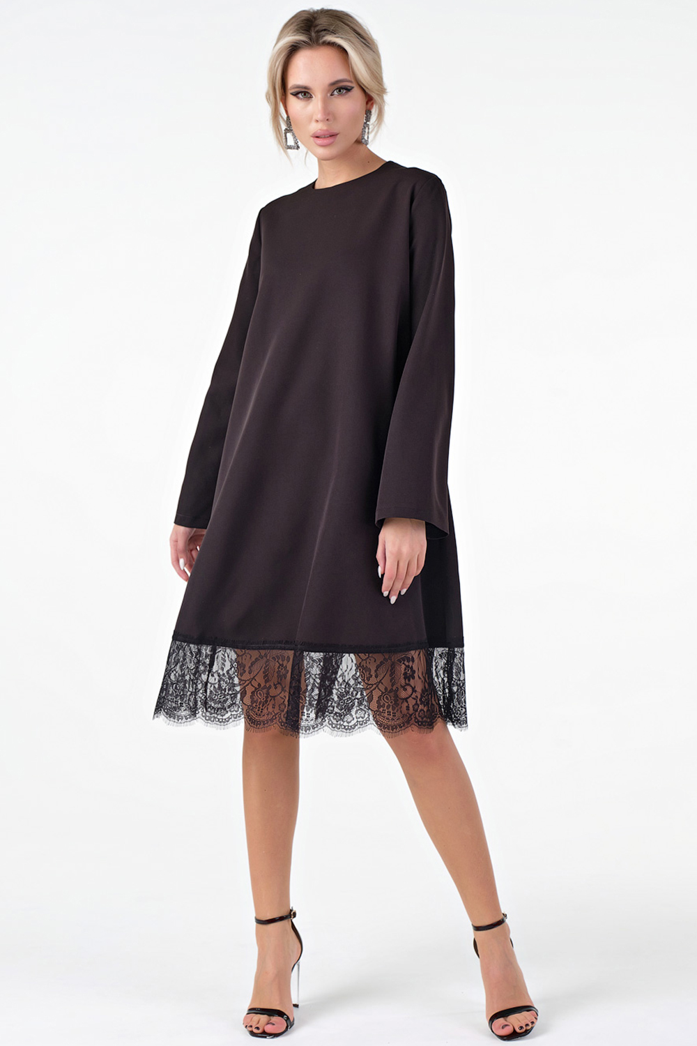 ст. цена2733руб.! Платье нарядное широкое с кружевом черное