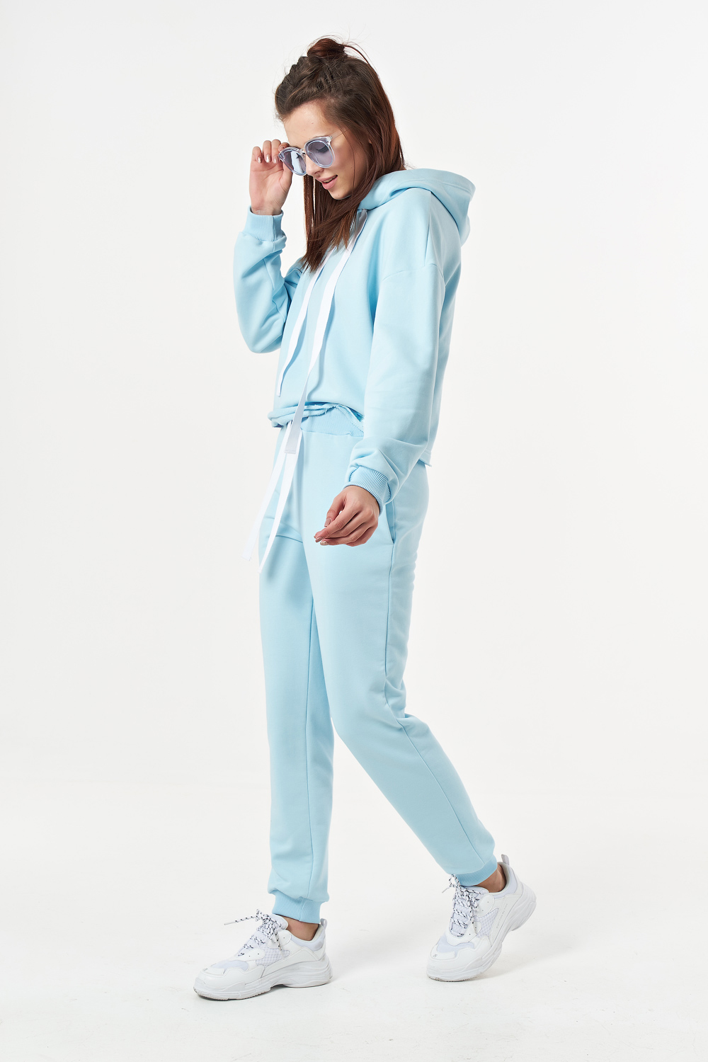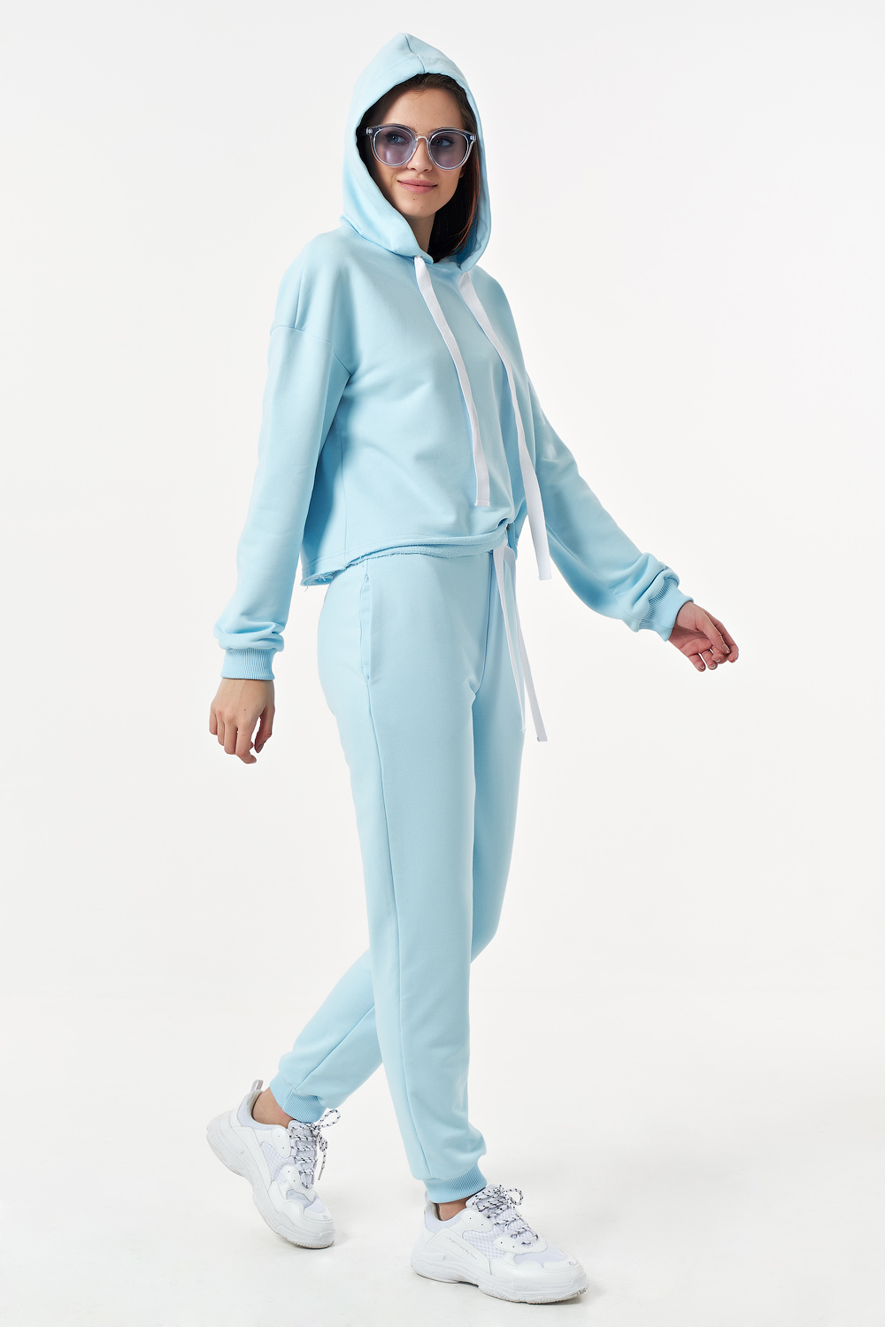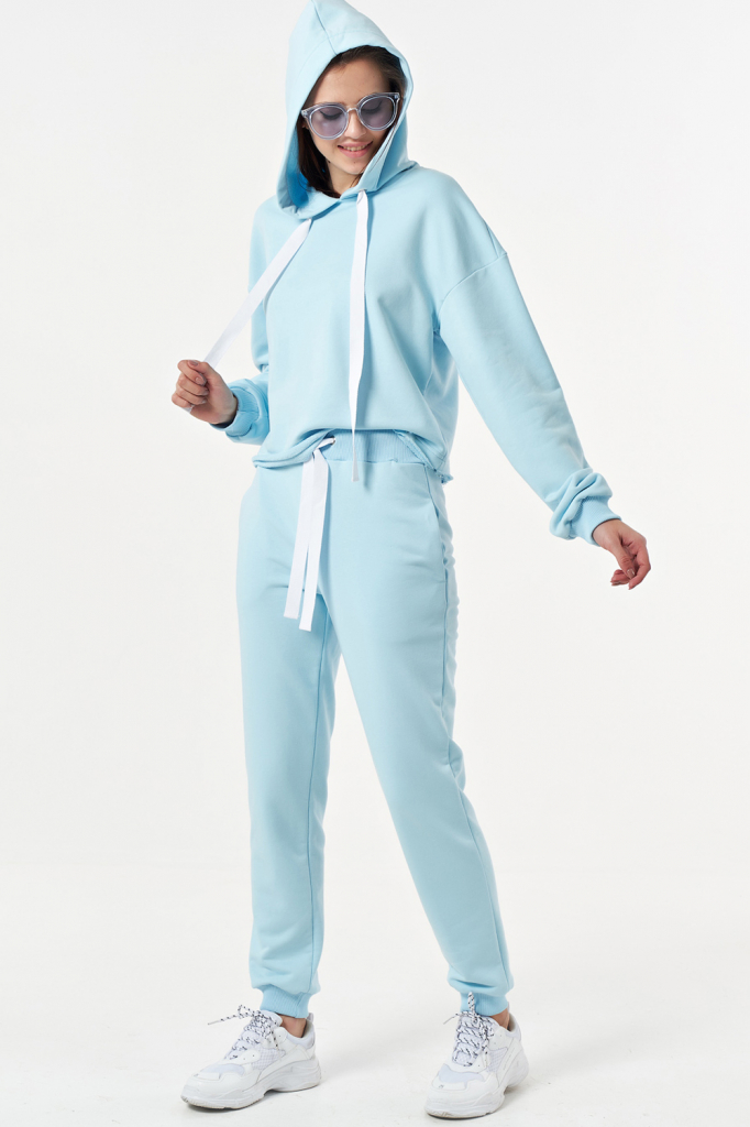 ст. цена3334руб.! Костюм спортивный брючный с худи из футера небесный