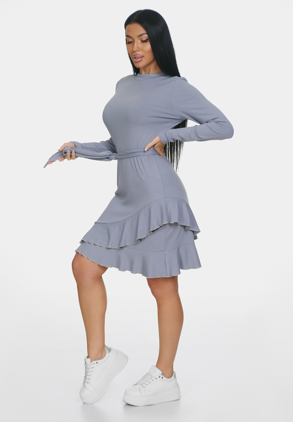 Это изысканное платье женское больших размеров из лапши настоящий шедевр для модницы, которая ценит комфорт и стиль. Свободный крой обеспечивает удобство движений, а мини-длина придаёт образу дерзость и современный акцент. Длинные рукава с изящными линиями создают неповторимый силуэт и добавляют образу воздушности. Круглая горловина добавляет образу нежности и изящества, делая его гармоничным и сбалансированным. Воланы снизу придают платью лёгкость и игривость, создавая интересные визуальные эффекты. Цвет: серый; Материал: лапша;лапша; Состав: 97% вискоза, 3% лайкра.