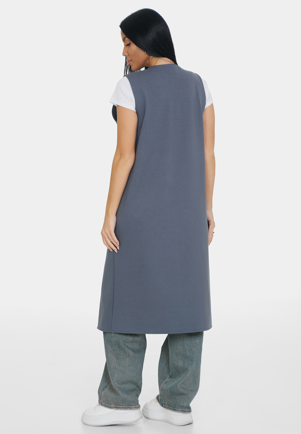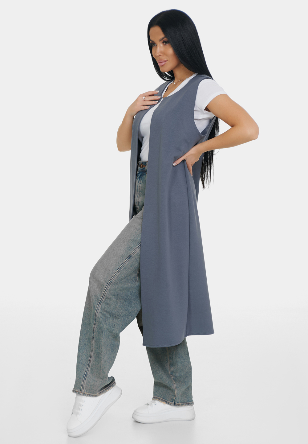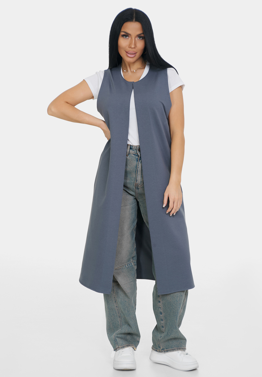 Жилетка женская длинная офисная больших размеров. Качественный удлиненный элемент женской одежды. Строгий жилет с правильной посадки, прямого кроя. Костюмный жилет поможет создать деловой образ. Цвет: серый;черный;индиго;какао; Материал: футер 2-х нитка;футер 2-х нитка; Состав: 60% хлопок, 40% полиэстер.
