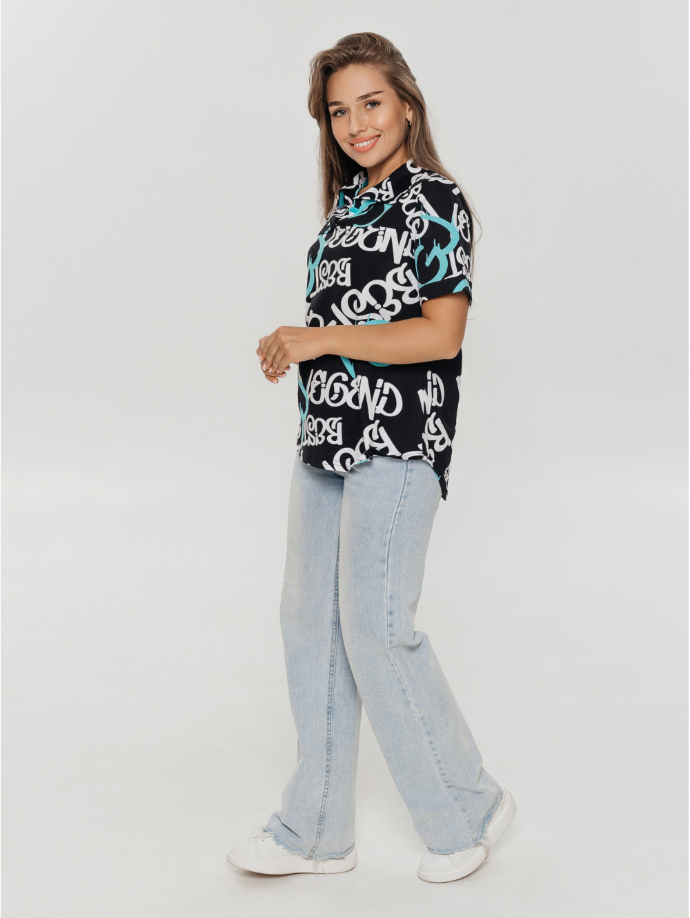 Футболка является неотъемлемой частью женского гардероба и обязана быть у  каждой дамы. Наше изделие  с коротким рукавом, низ округлой формы с перепадом длины.