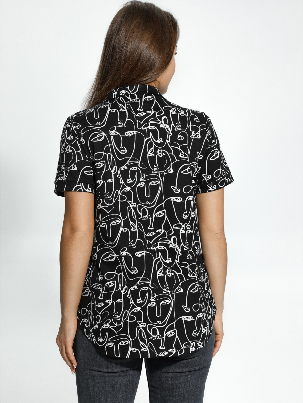 Наше изделие  с коротким рукавом, низ округлой формы с перепадом длины.