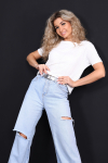 Уход за изделием не потребует специальных усилий: деликатная стирка при температуре до 30 C на щадящем режиме и отжим до 800 об/мин и футболка снова готова к выходу. Избегайте отбеливателей и агрессивных пятновыводителей, а для сохранения блеска стразов лучше выворачивать вещь наизнанку перед стиркой.