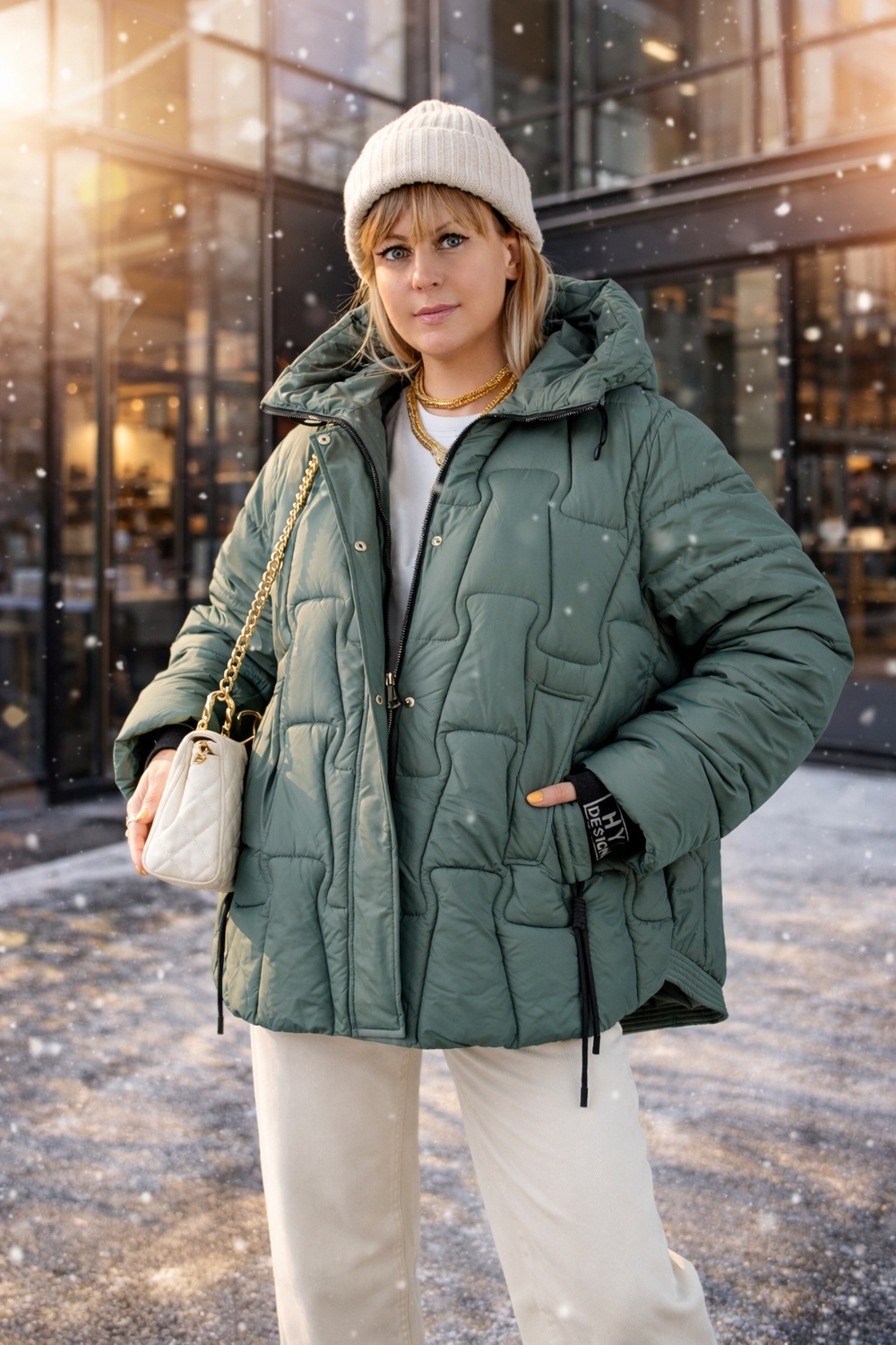 Конструкция куртки продумана до мелочей. Центральную застёжку-молнию дополняет утеплённая планка на кнопках, препятствующая проникновению холодного воздуха. Ассиметричная стёжка придаёт изделию супермодный характер, при этом наполнитель из высококачественного файбера распределён равномерно благодаря специальной стёжечной технологии (не ультрастеп), что исключает образование холостых зон и сохраняет тепло даже в сильный мороз.