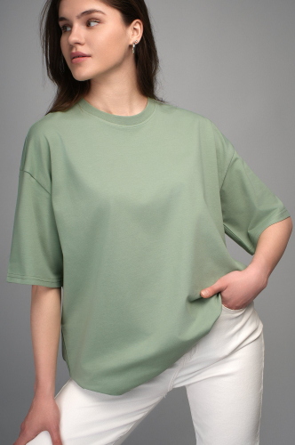 Женская футболка подчёркивает каждый изгиб, делая фигуру более изящной. Облегающая посадка визуально стройнит и привлекает внимание к тонкой талии. Модель с короткими рукавами и круглым вырезом горловины слегка удлиняет прекрасную шею.