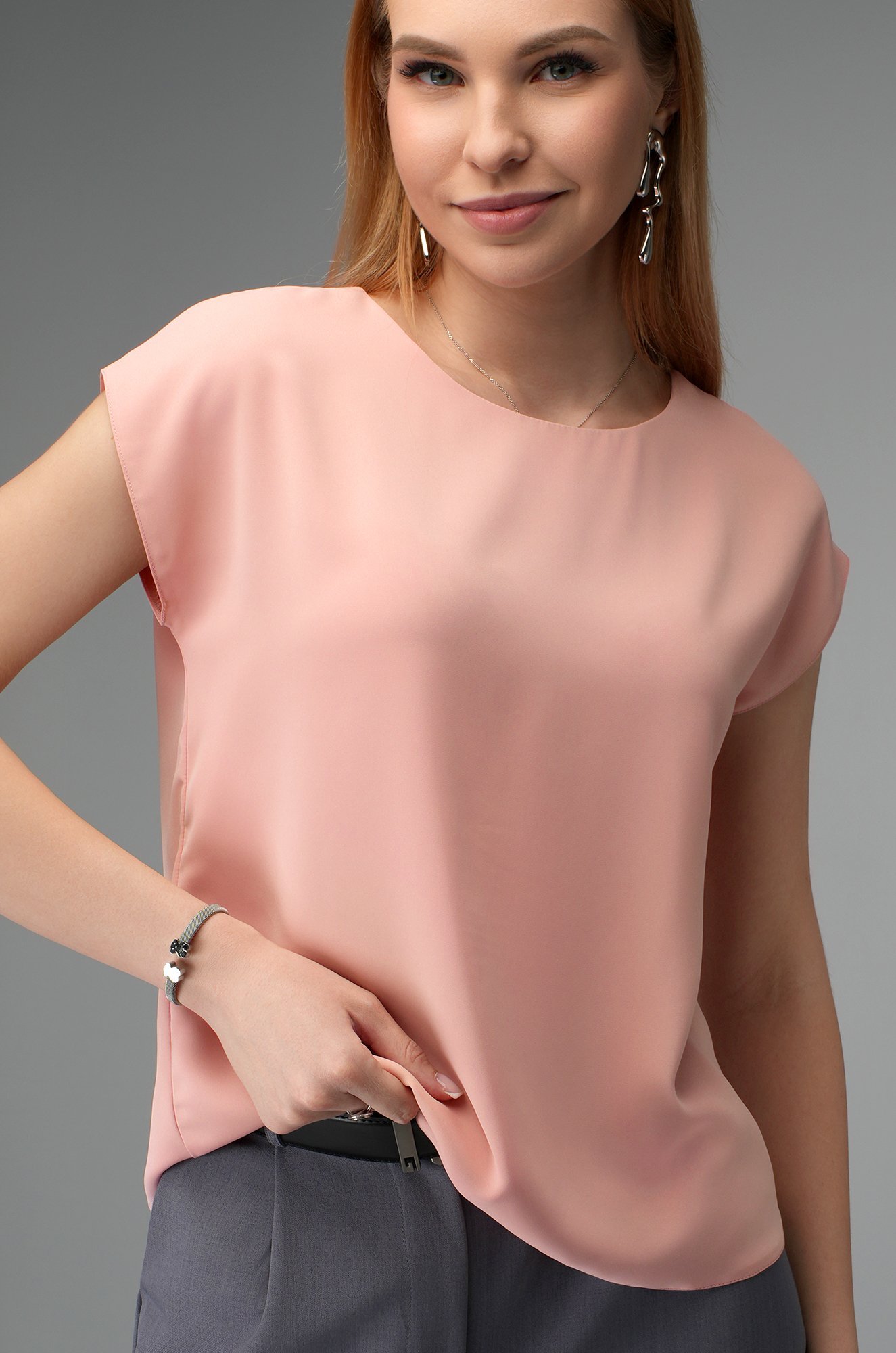 Шелковая розовая блузка подойдёт для деловых встреч и рабочих дней — в ней легко выглядеть собранно и стильно.