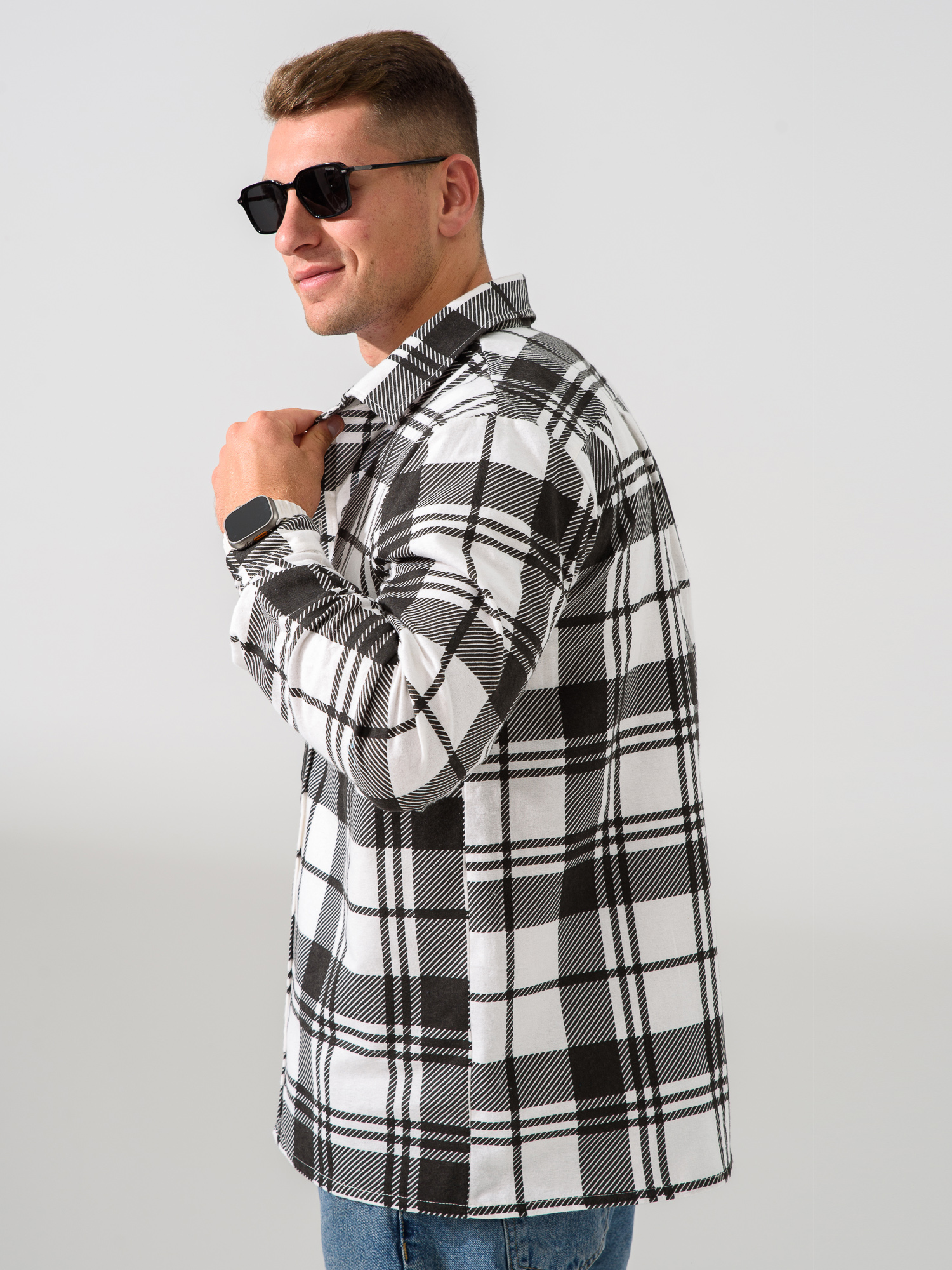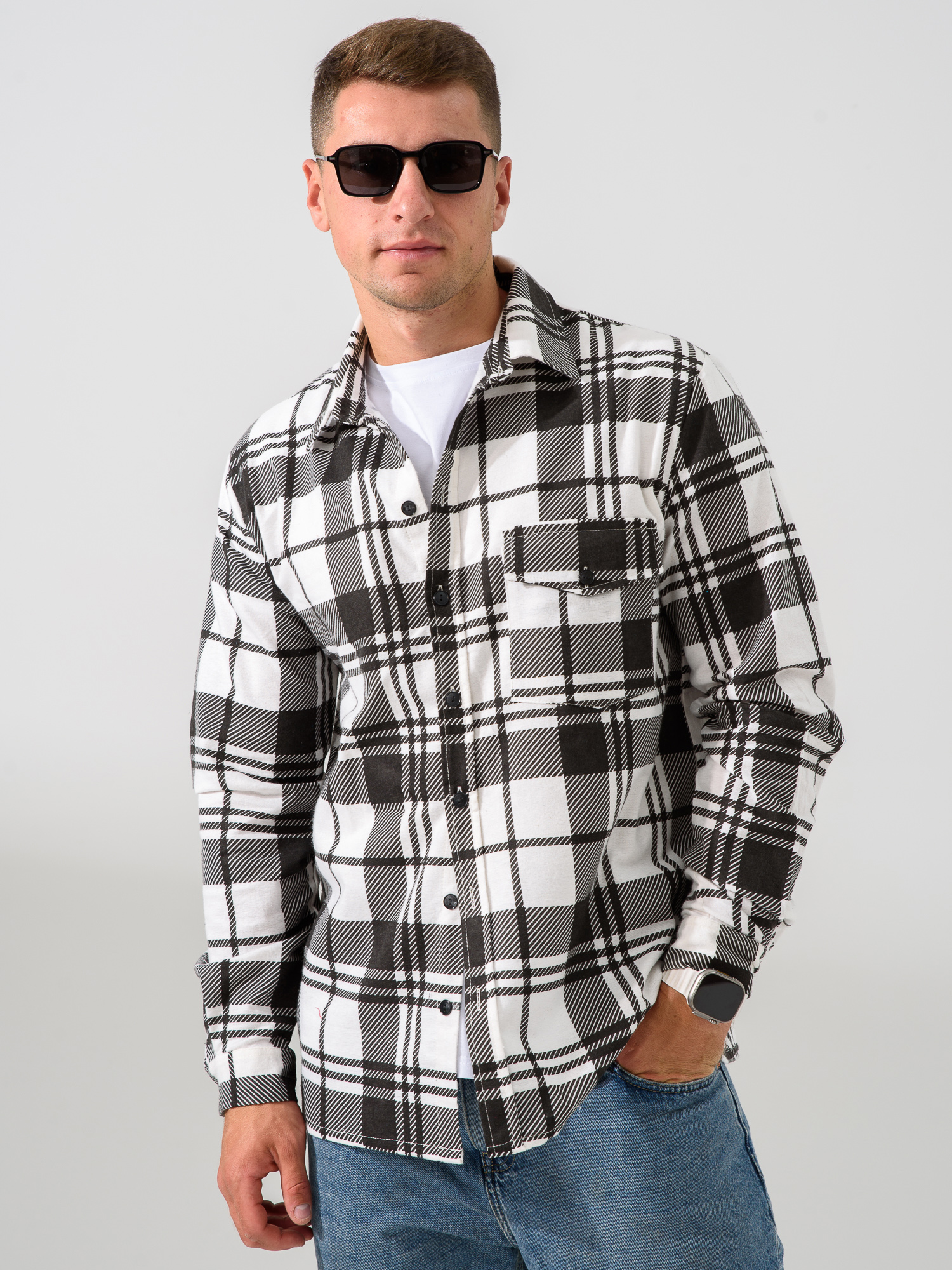 Мужская классическая сорочка из 100% хлопчатобумажной ткани – фланель, с длинными рукавами и застёжкой на петли - пуговицы. На полочке с левой стороны нагрудный накладной карман с клапаном. Рукава на манжетах. Воротник отложной с отрезной стойкой. Сорочка может быть использована как комфортная одежда для дома, так и в качестве повседневной одежды. Создать красивый стильный комплект можно дополнив сорочку трикотажной футболкой.