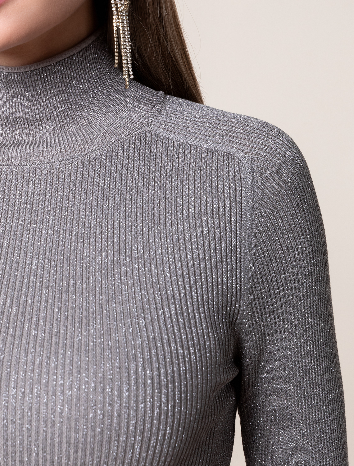 Свитер фактурной вязки из вискозы с прозрачным люрексом